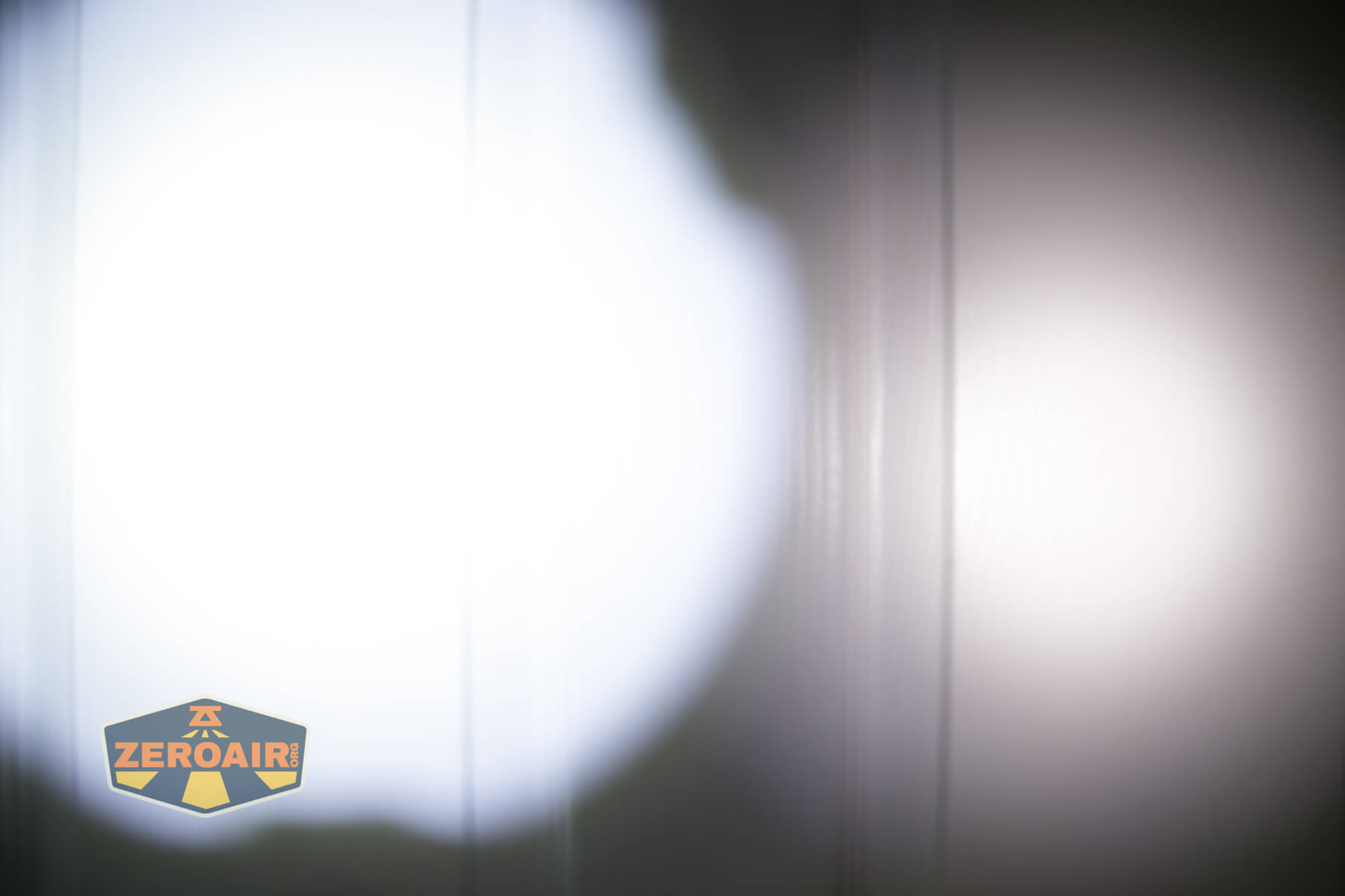 These beamshots always have the following settings: f8, ISO100, 0.3s shutter, and manual 5000K exposure. These photos are taken at floor level, and the beam hits the ceiling around 9 feet away. Red is fourth (as above in CRI/CCT) and blue is last (also as above.)