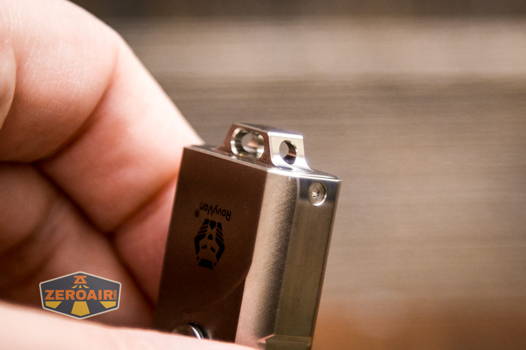 Also, the RovyVon Angel Eyes E4Ti flashlight offers tritium slots! There are four in the head – each corner has what I call “peekaboo” slots. The design allows the tritium to be seen from the side and front, too!