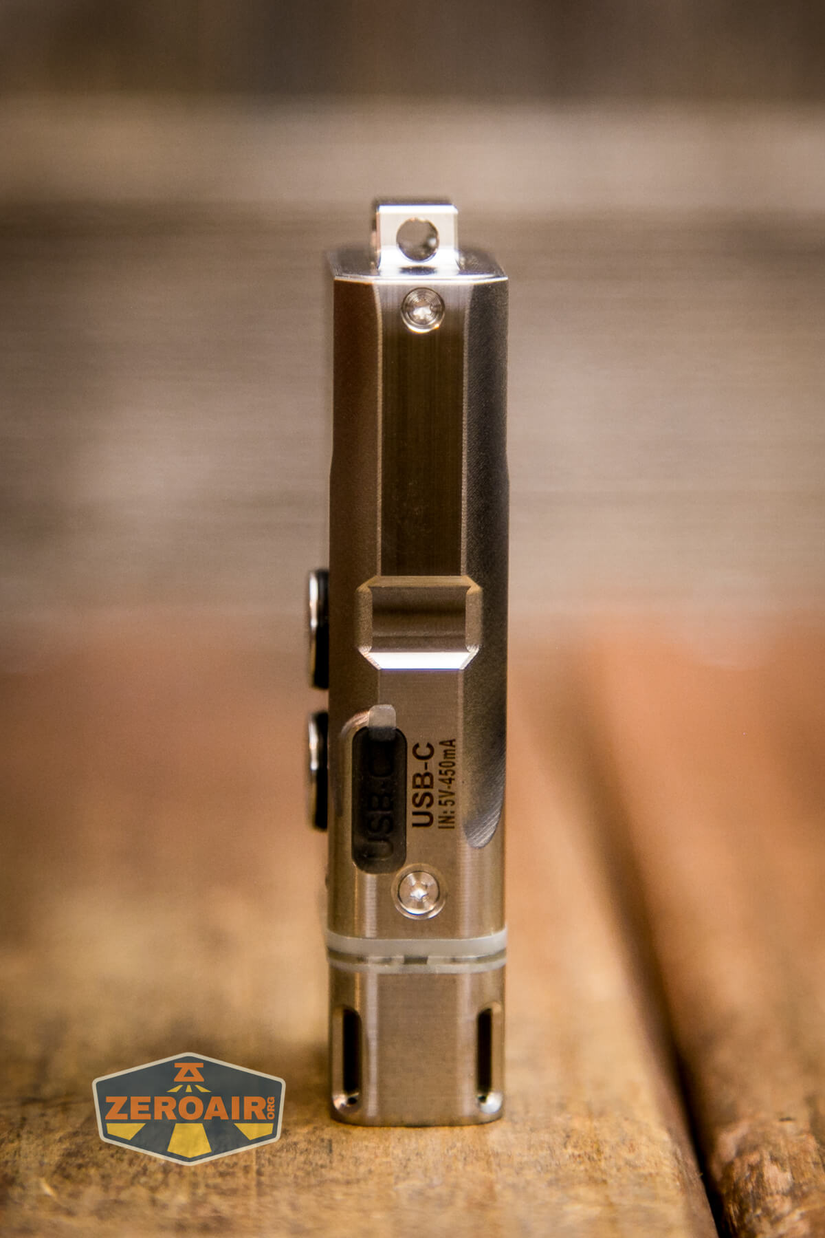 USB-C charging is available on the E4Ti. This charging port is on the side of the light, and near the switches. This location is a departure from similar lights like the E3. The cover presses in and says in place fairly well.
