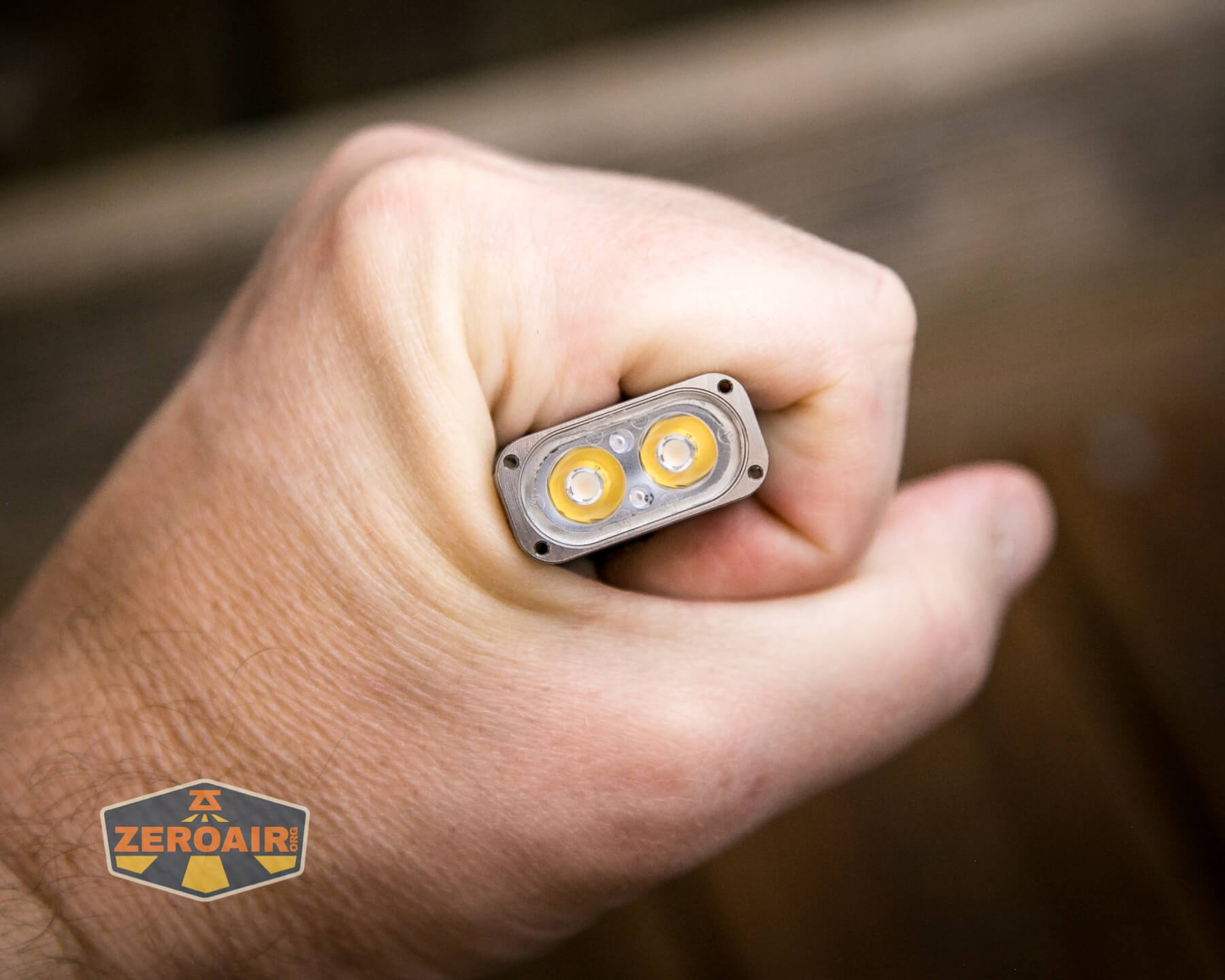 There are also emitter options. This version (titanium) doesn’t have any secondary (or “side”) emitters, but the front is available in cool white or warm white (seen here).