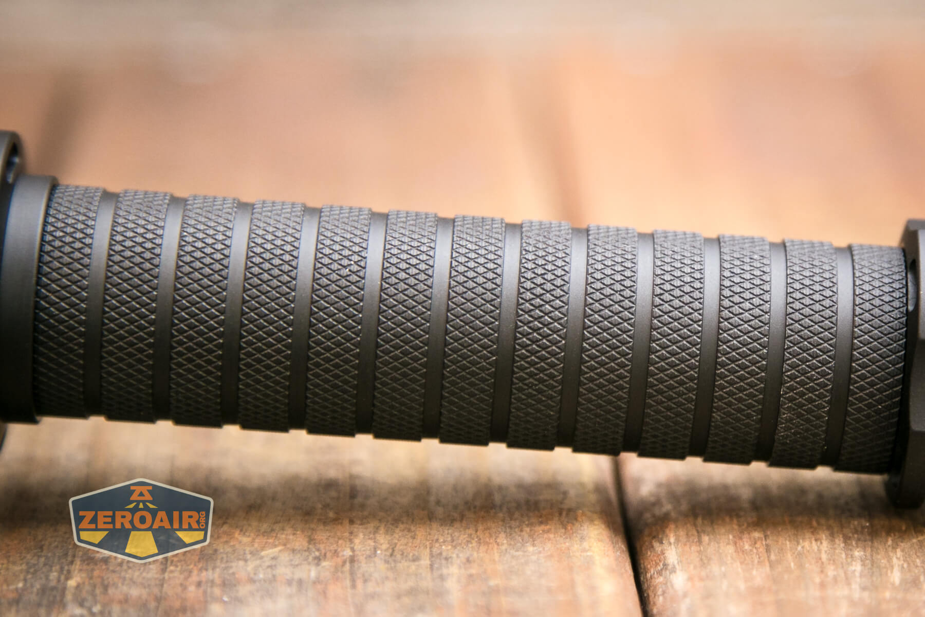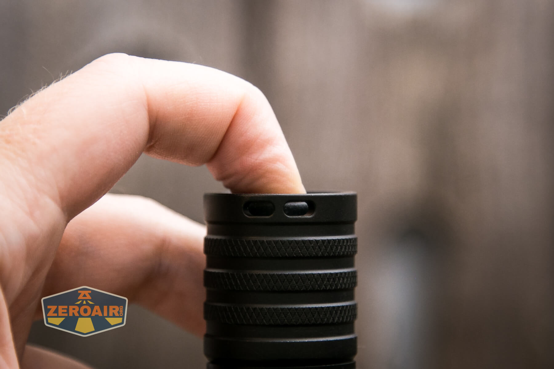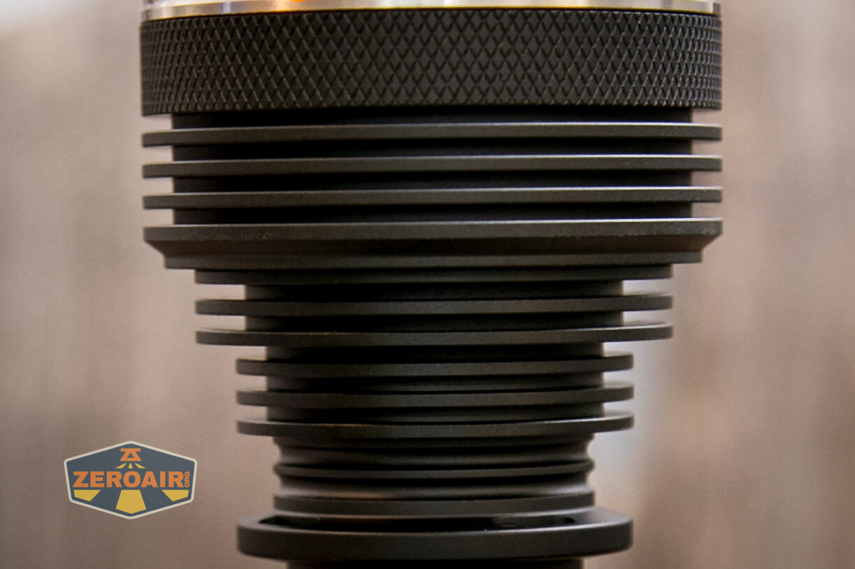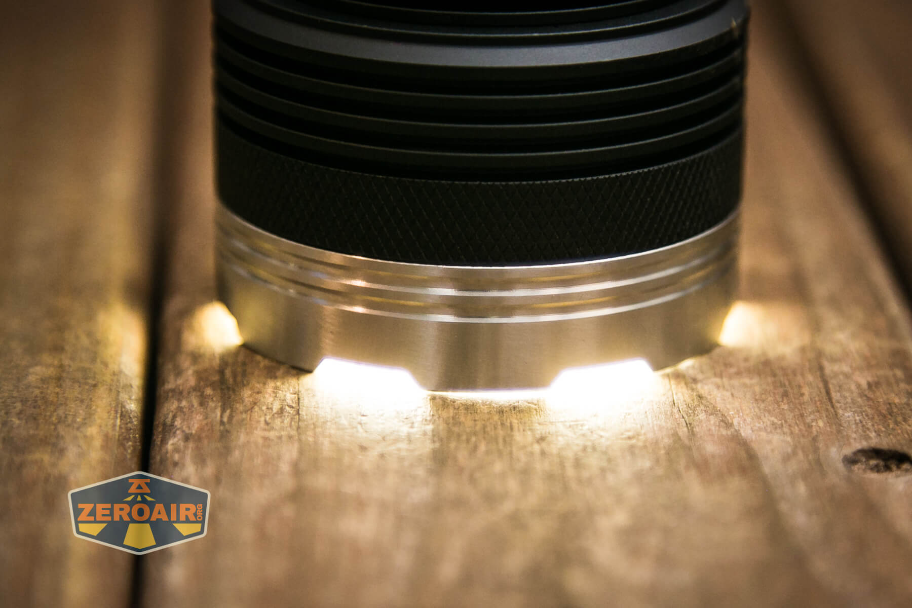 First, there’s a tactical ring on the tail end. This tactical ring ships installed but can be removed easily when the tailcap is off.
