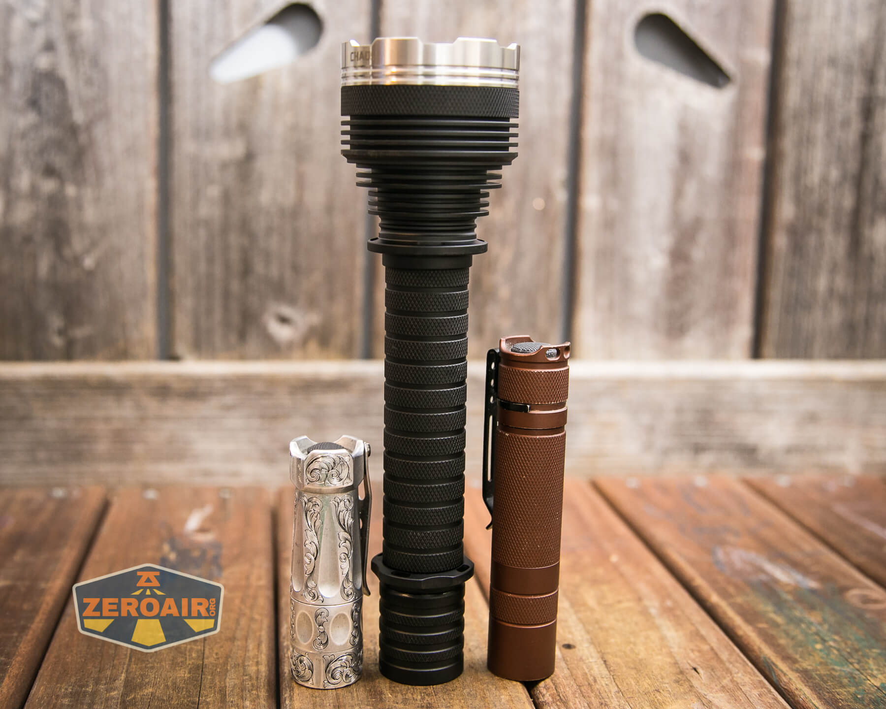Also seen above is the light beside my custom-engraved TorchLAB BOSS 35, an 18350 light. I reviewed the aluminum version of that light in both 35 and 70 formats.