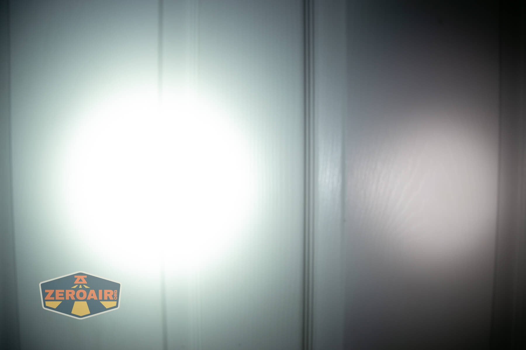 Here’s the test light with the venerable Convoy S2+. Mine’s a custom “baked” edition Nichia 219b triple. A very nice 18650 light.