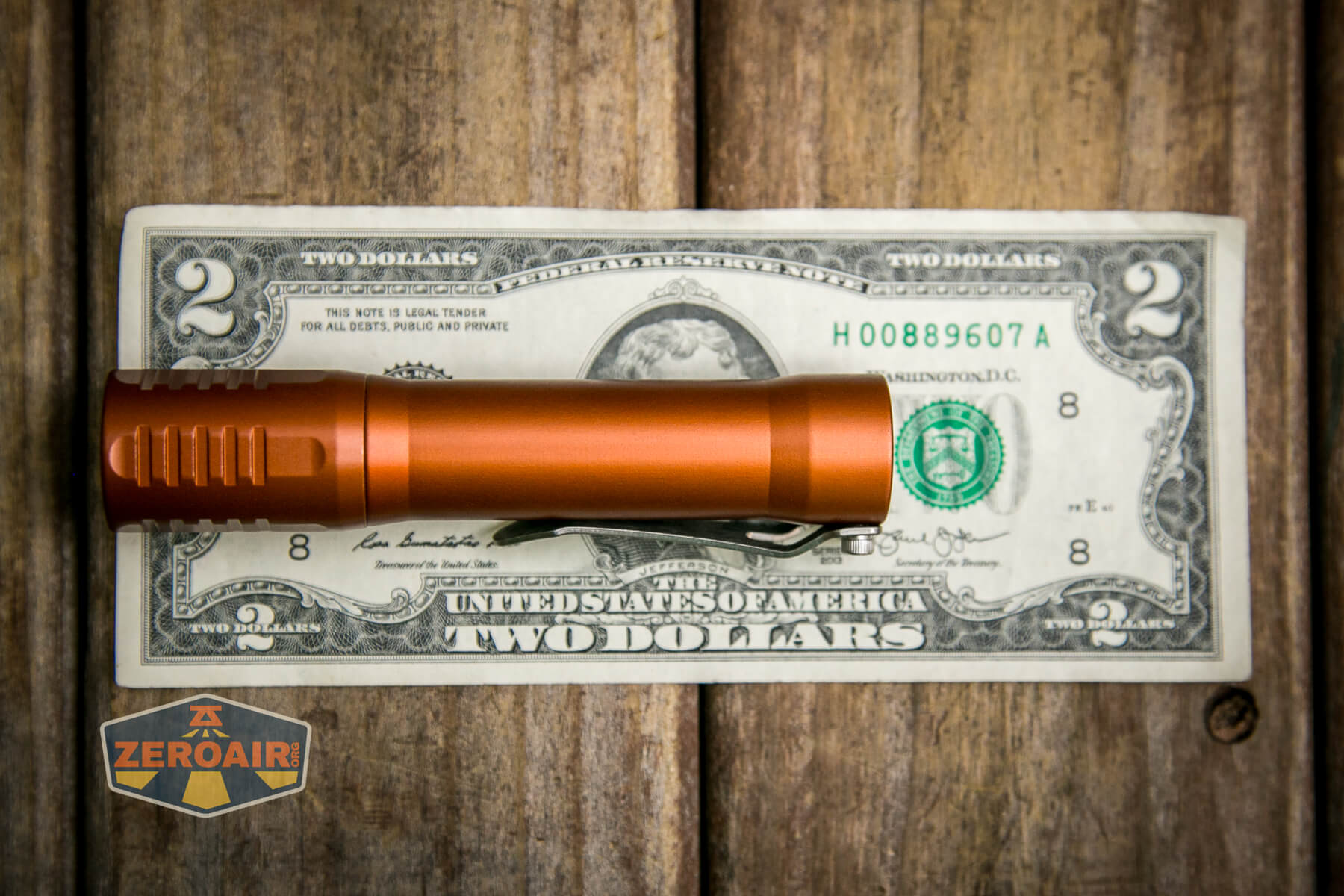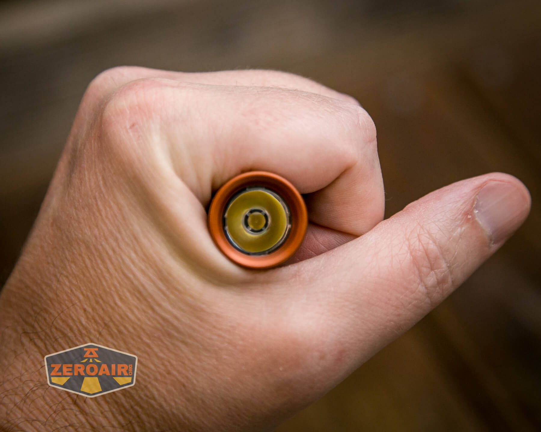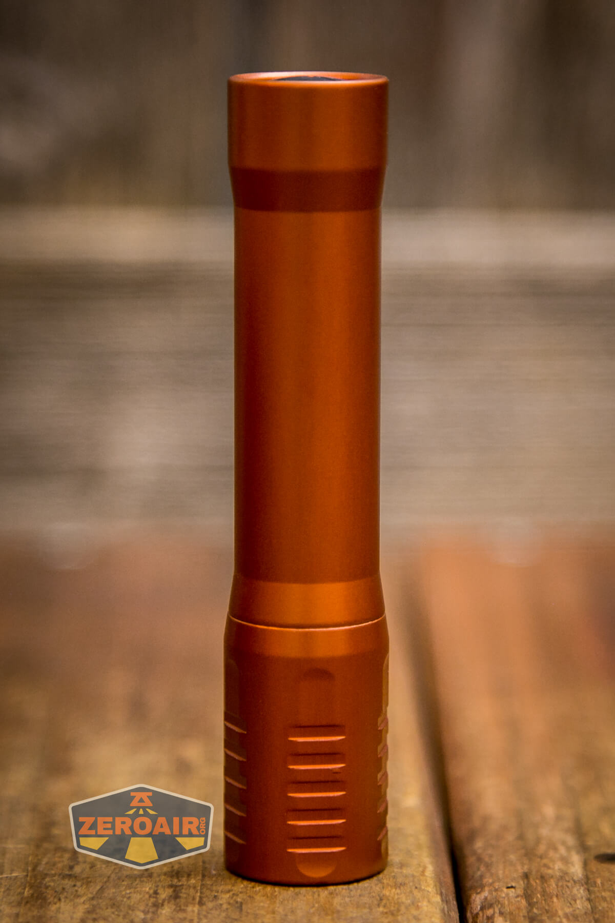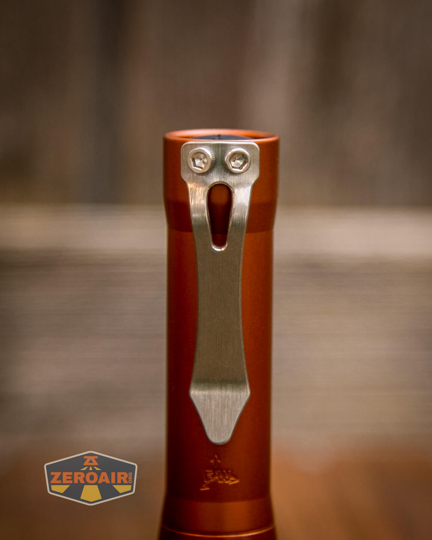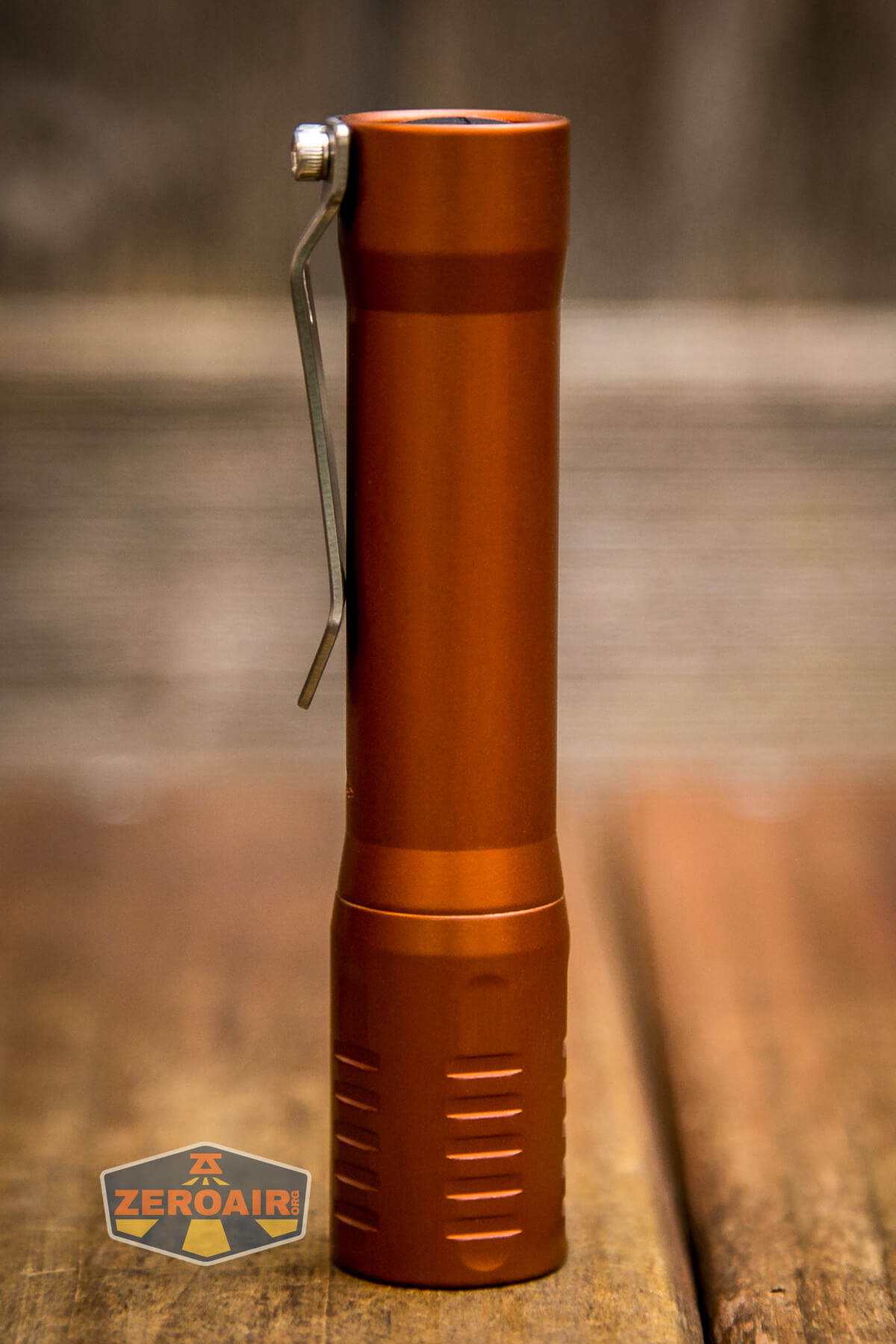 There are many finishes of the FocusWorks EDC F2 flashlight. This version is aluminum and finished in “Blood Orange” anodizing. Also available are cerakote versions and different metal versions, too. Jordy of FocusWorks has an interest in … everything, too, so if you have a wild hair idea for metals, you can probably get Jordy to make an F2 out of it!