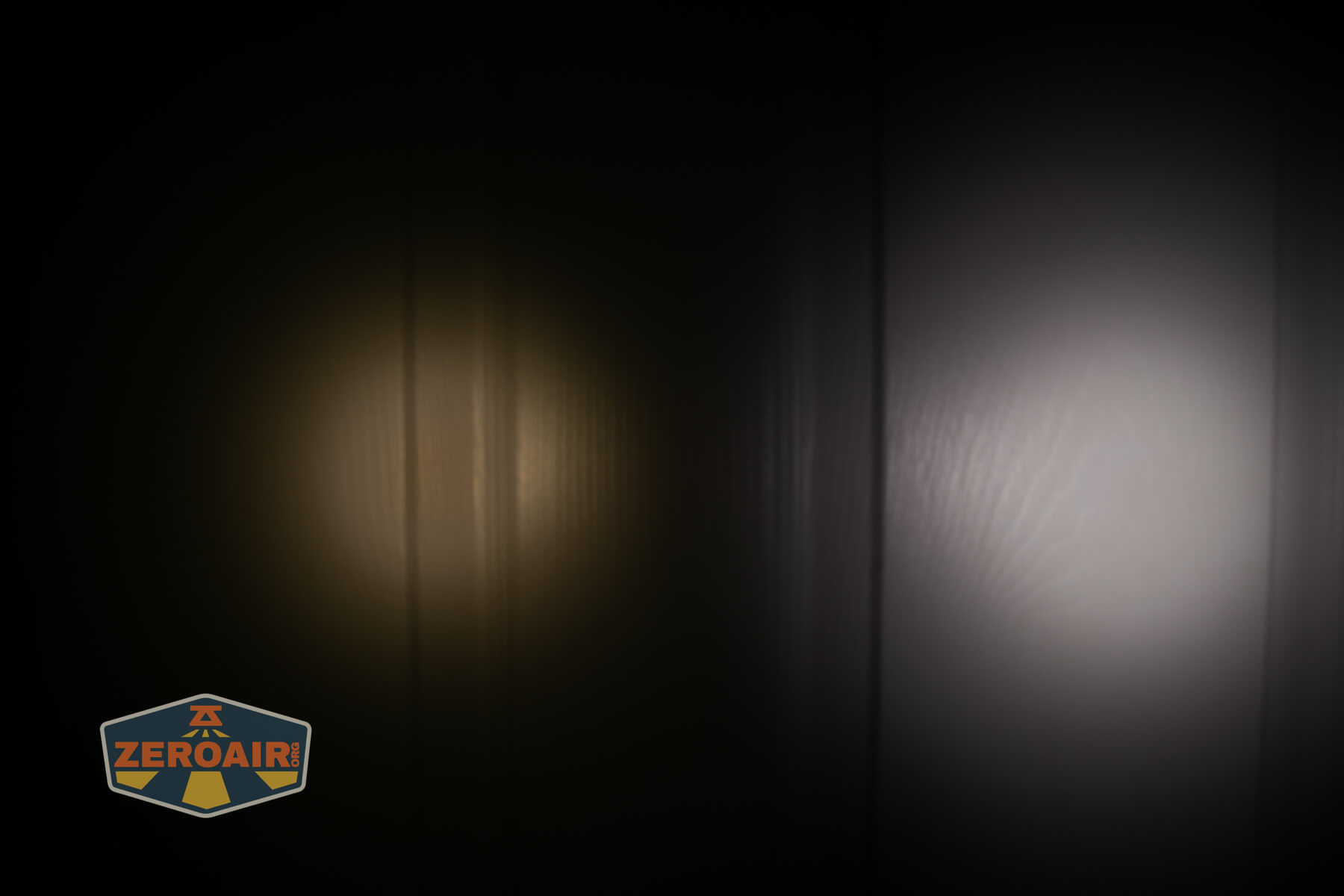 Here’s the test light with the venerable Convoy S2+. Mine’s a custom “baked” edition Nichia 219b triple. A very nice 18650 light.
