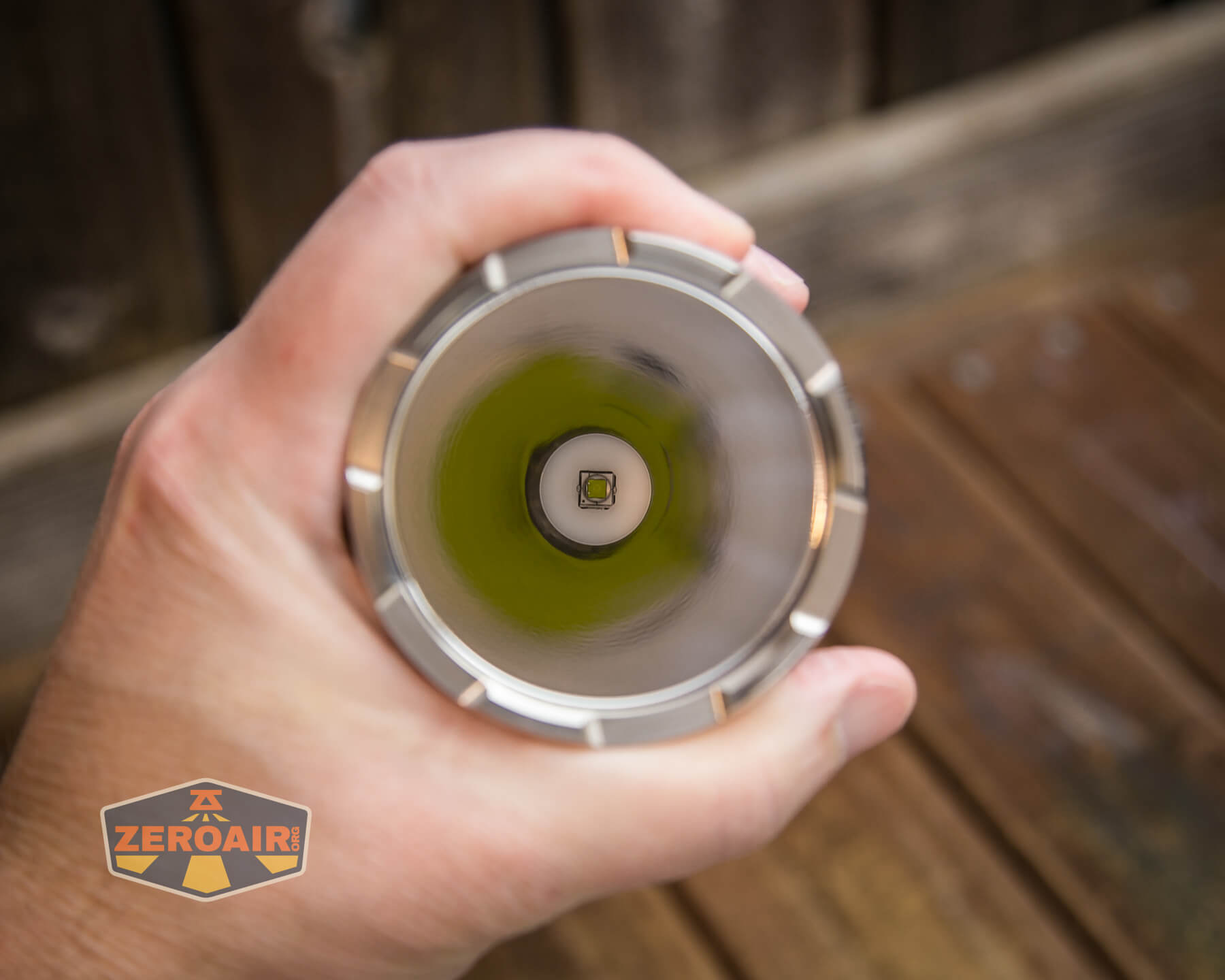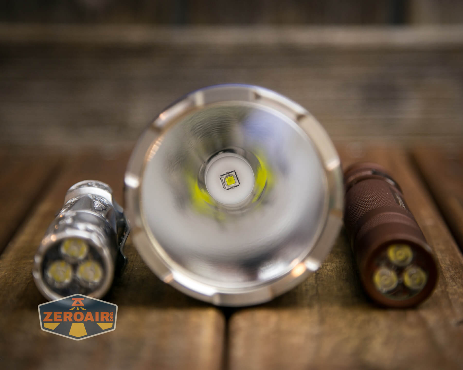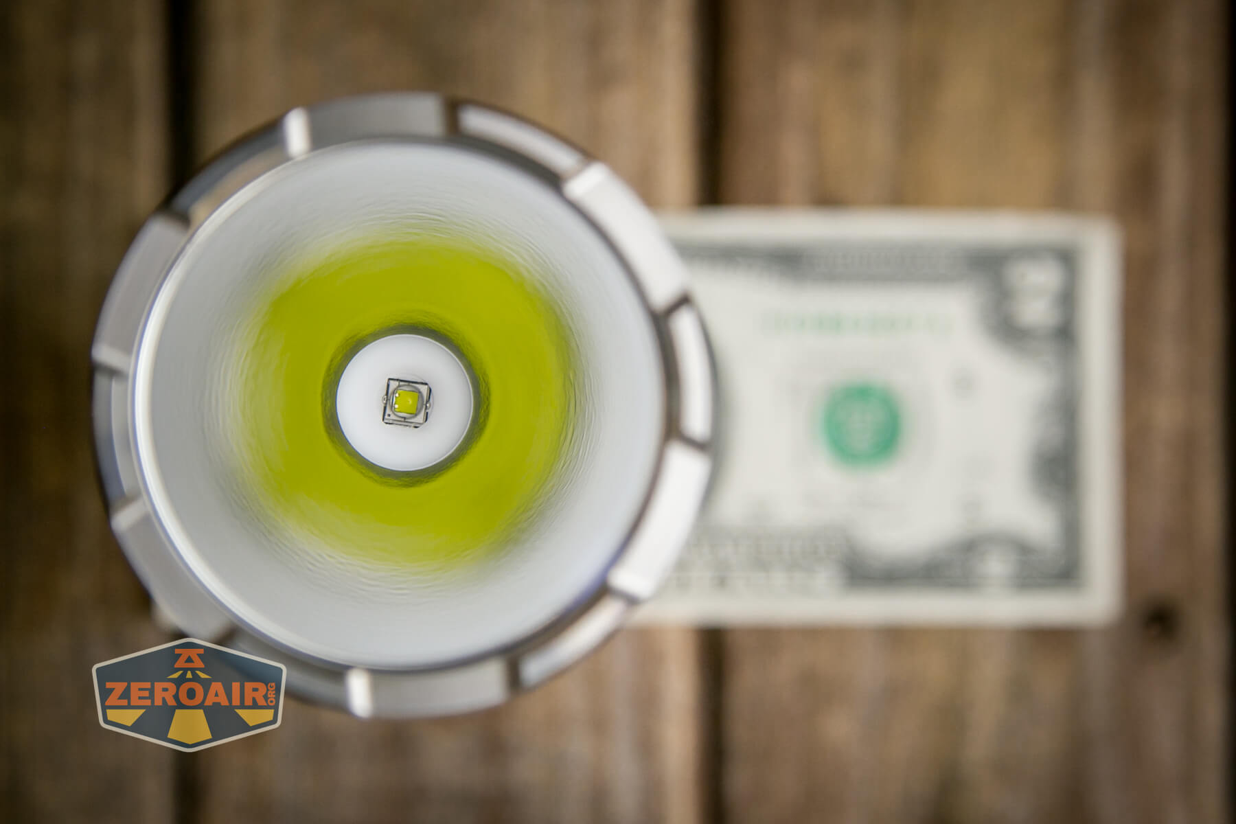 In the Mateminco MT35 Mini flashlight is a Luminus SST-40 emitter. There are options, but mine is 5000K (and that’s what I recommend.) The reflector is wide, deep, and mostly smooth.