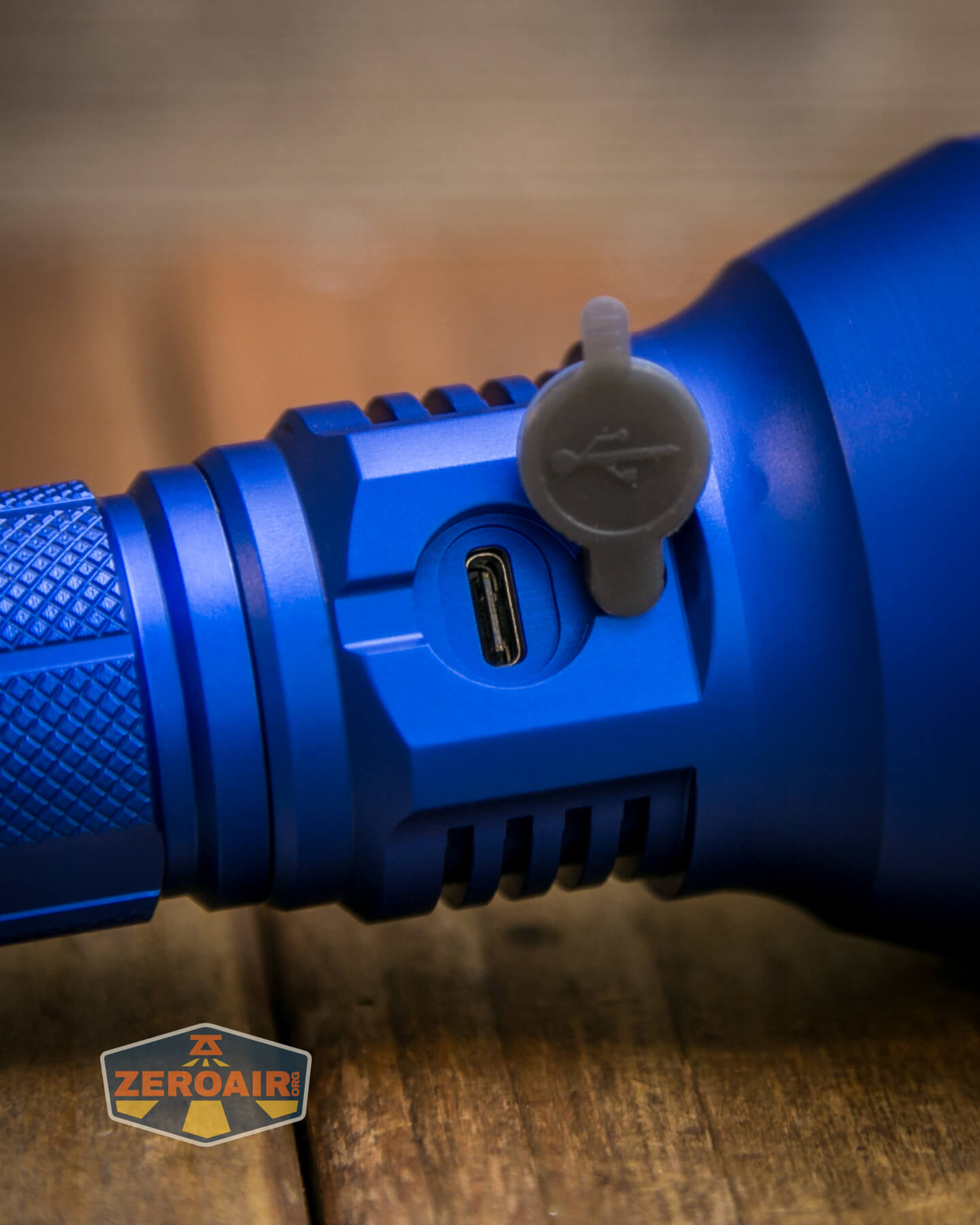 Built into the Mateminco MT35 Mini flashlight is USB-C charging, which is on the head just opposite the switch.