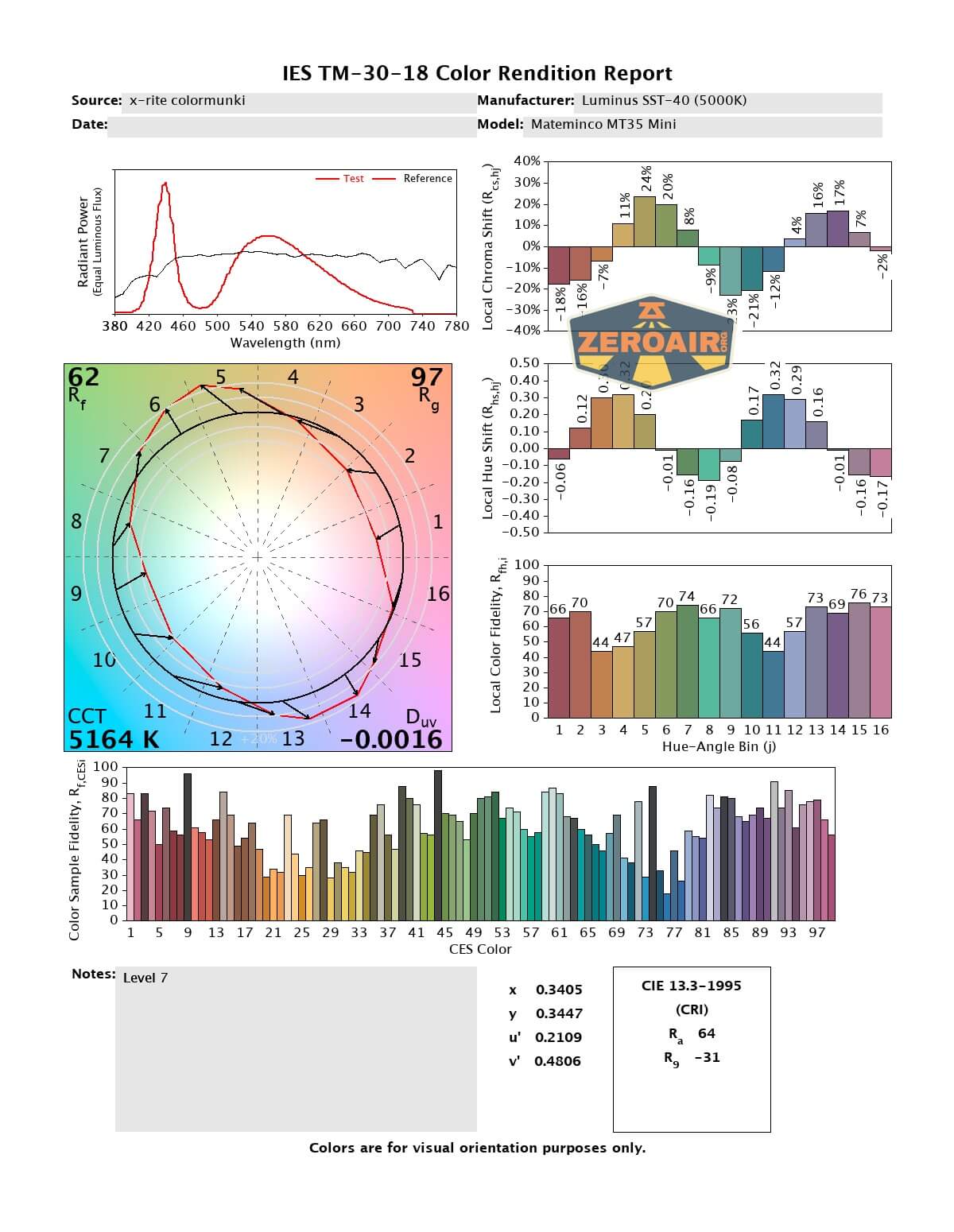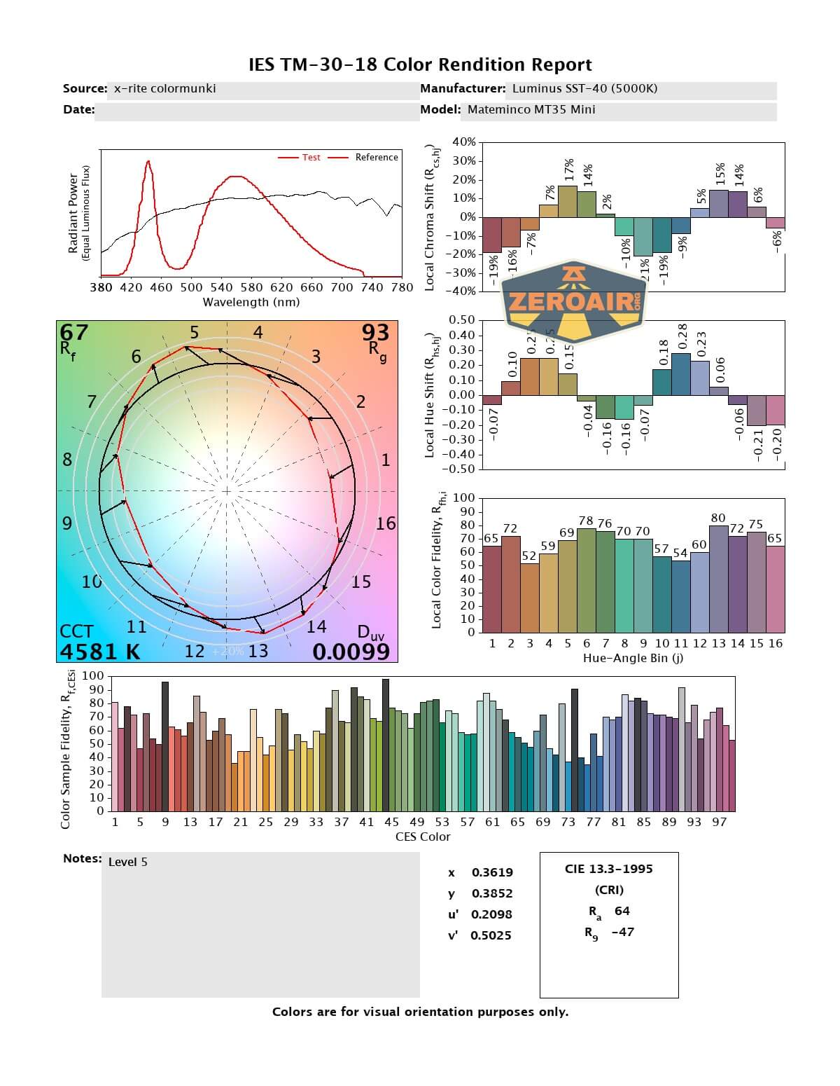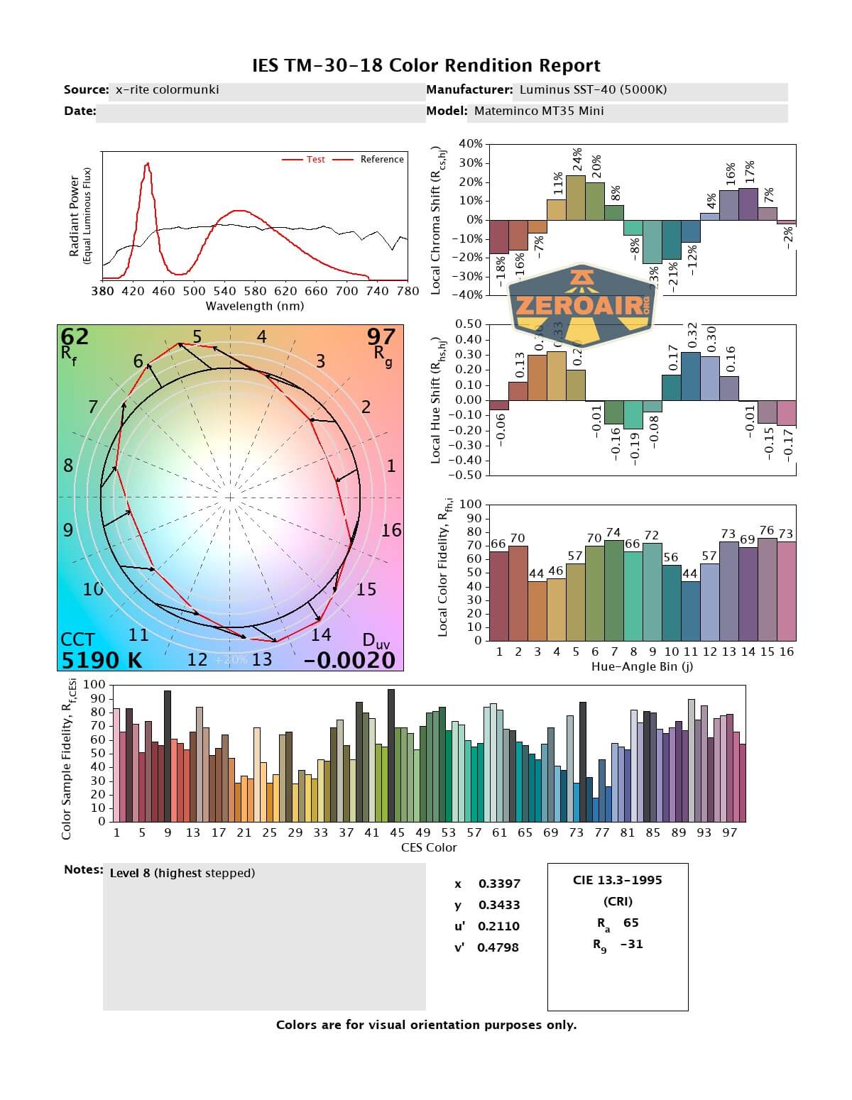 Mateminco rates the CCT accurately at 5000K. From the low to highest output, the CCT ranges from around 4800K to 5200K. That’s good. CRI is not great at below 70 for most levels.