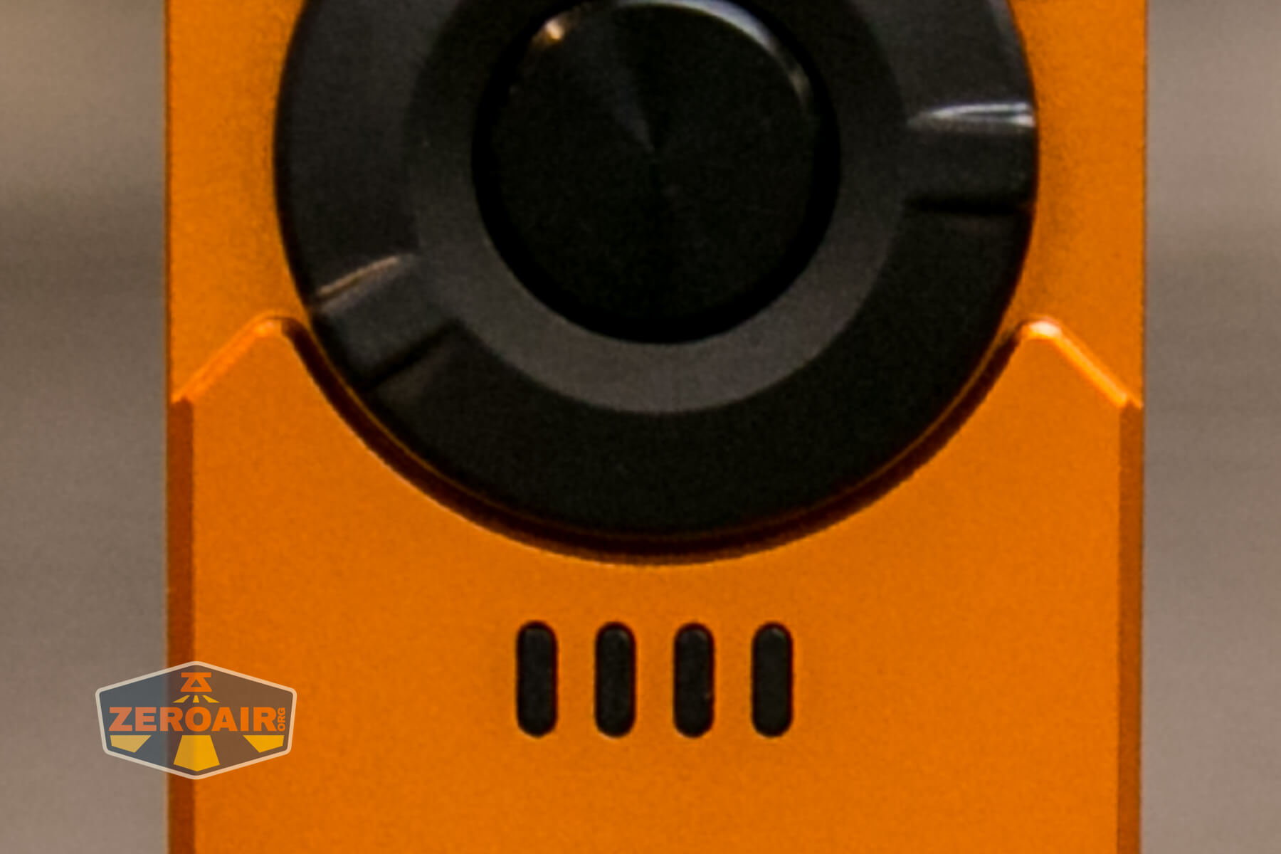 Olight states this as a “Built-in 1050mAh Lithium Polymer Battery” and that’s perfectly logical. I was unable to gain any access to the LiPO but did run a few output tests. There is a battery indicator below the switch and it indicated when the voltage is low. The light finally shuts off, too. Output is nice and flat, even there at the start at around 900 lumens. That’s 3 or 4 minutes at around 900 lumens…
