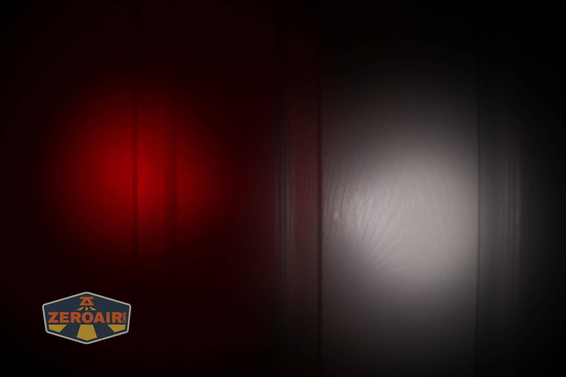 I’d call the CCT an improvement for this version of the BSS weapon mount flashlight. I’m reading it at around 5400K (low) to around 5800K on high. That’s not too bad! Not really too “cool” for a cool white emitter, too. CRI is unsurprisingly low, though, at under 70.