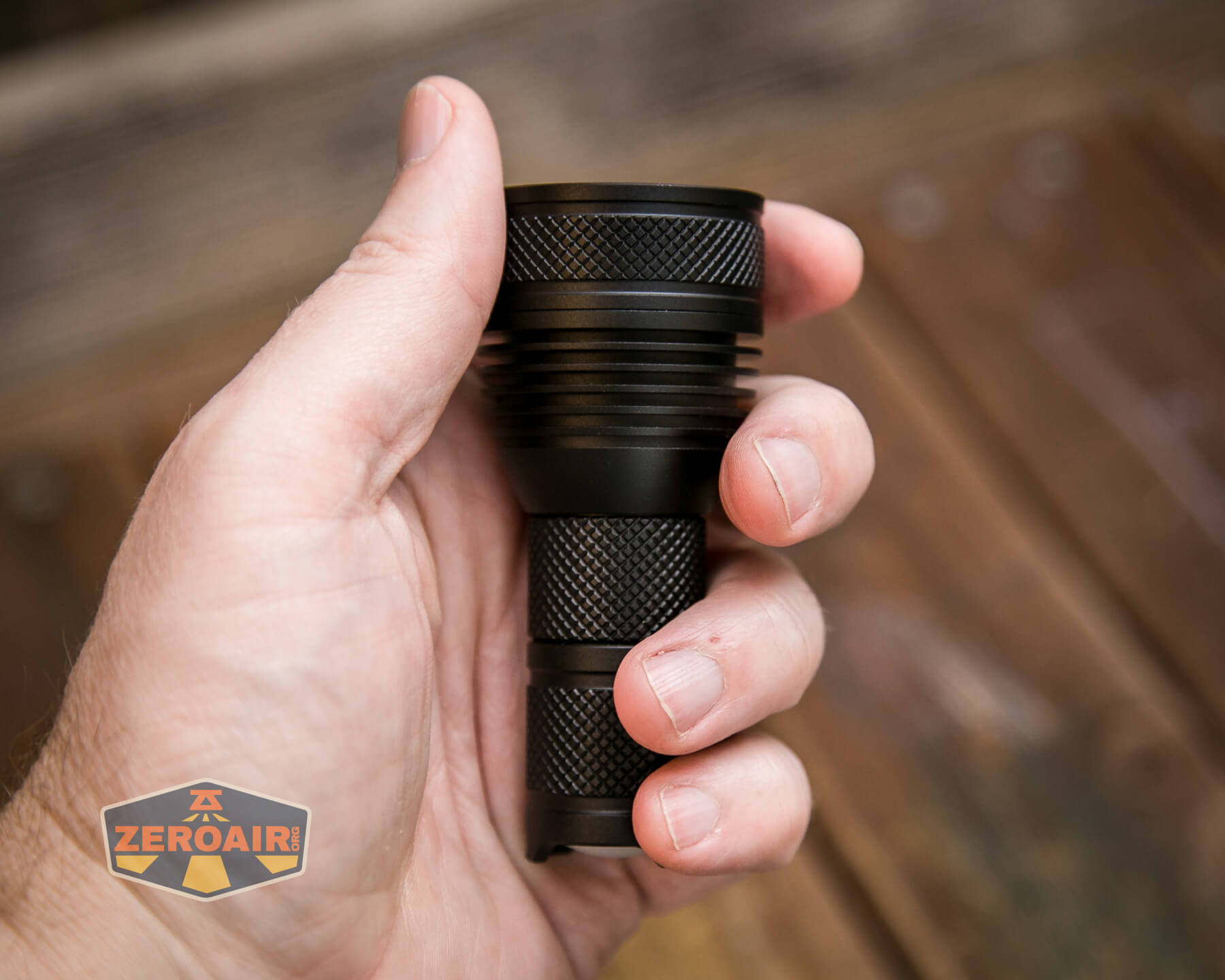 The head has some nice and fairly deep cooling fins. As you can see, the bezel has knurling, too.
