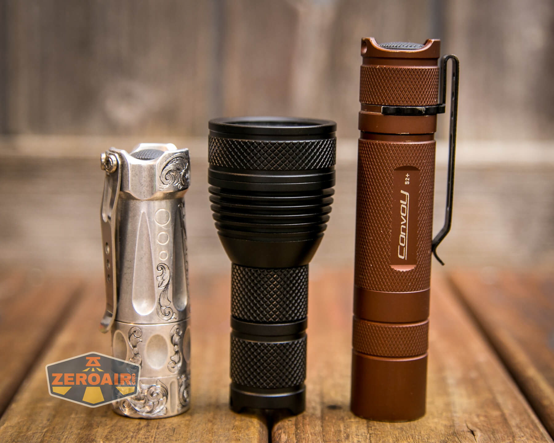 Also above is the light beside my custom-engraved TorchLAB BOSS 35, an 18350 light. I reviewed the aluminum version of that light in both 35 and 70 formats.