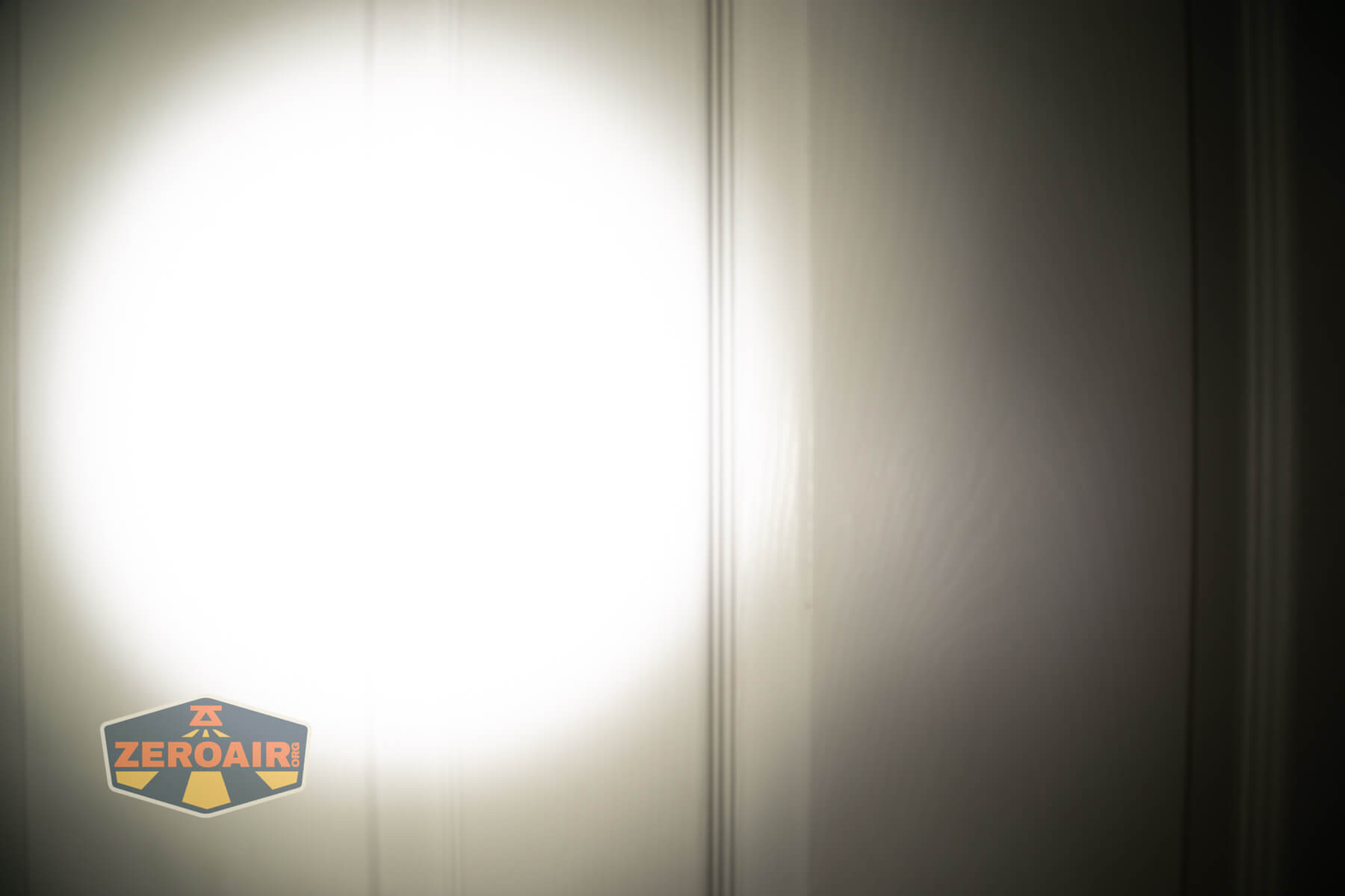 Here’s the test light with the venerable Convoy S2+. Mine is a custom “baked” edition Nichia 219b triple. A very nice 18650 light!