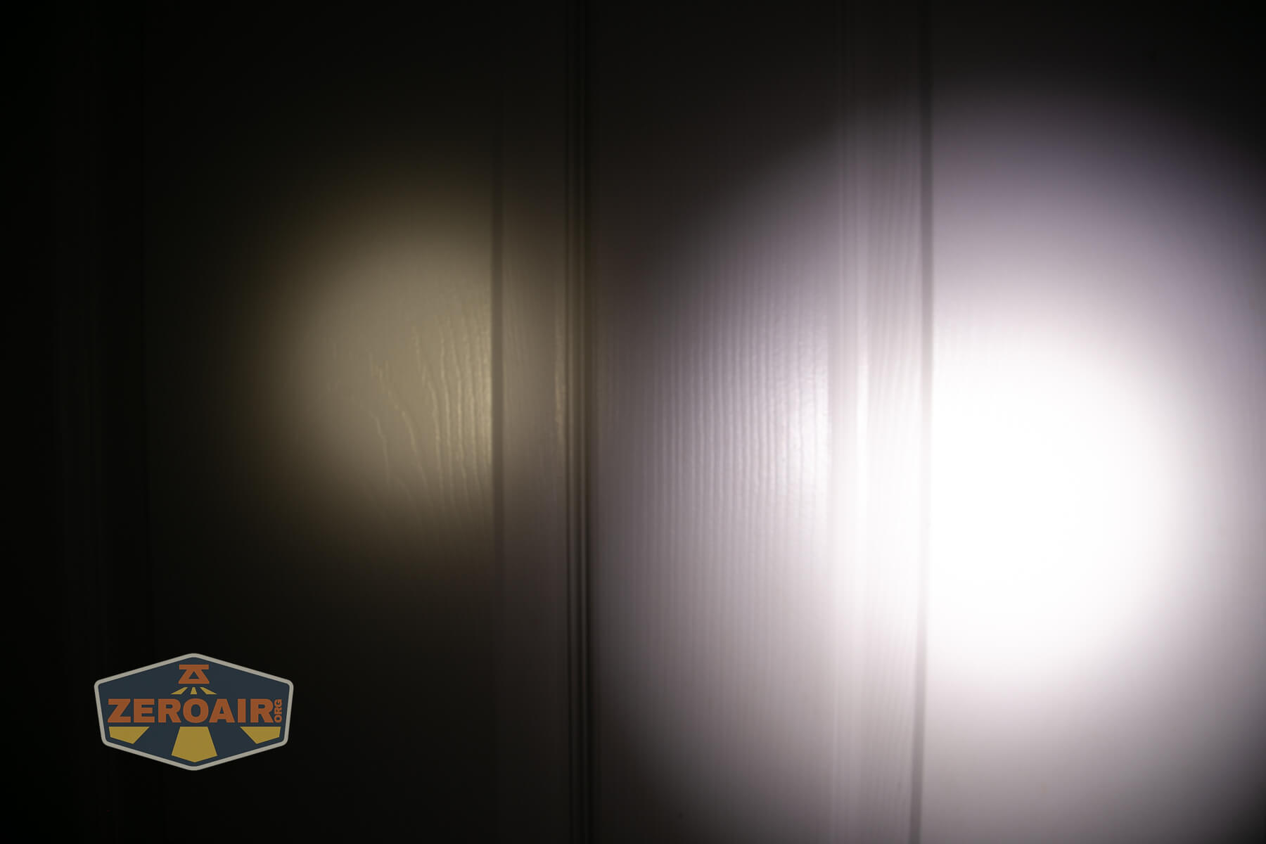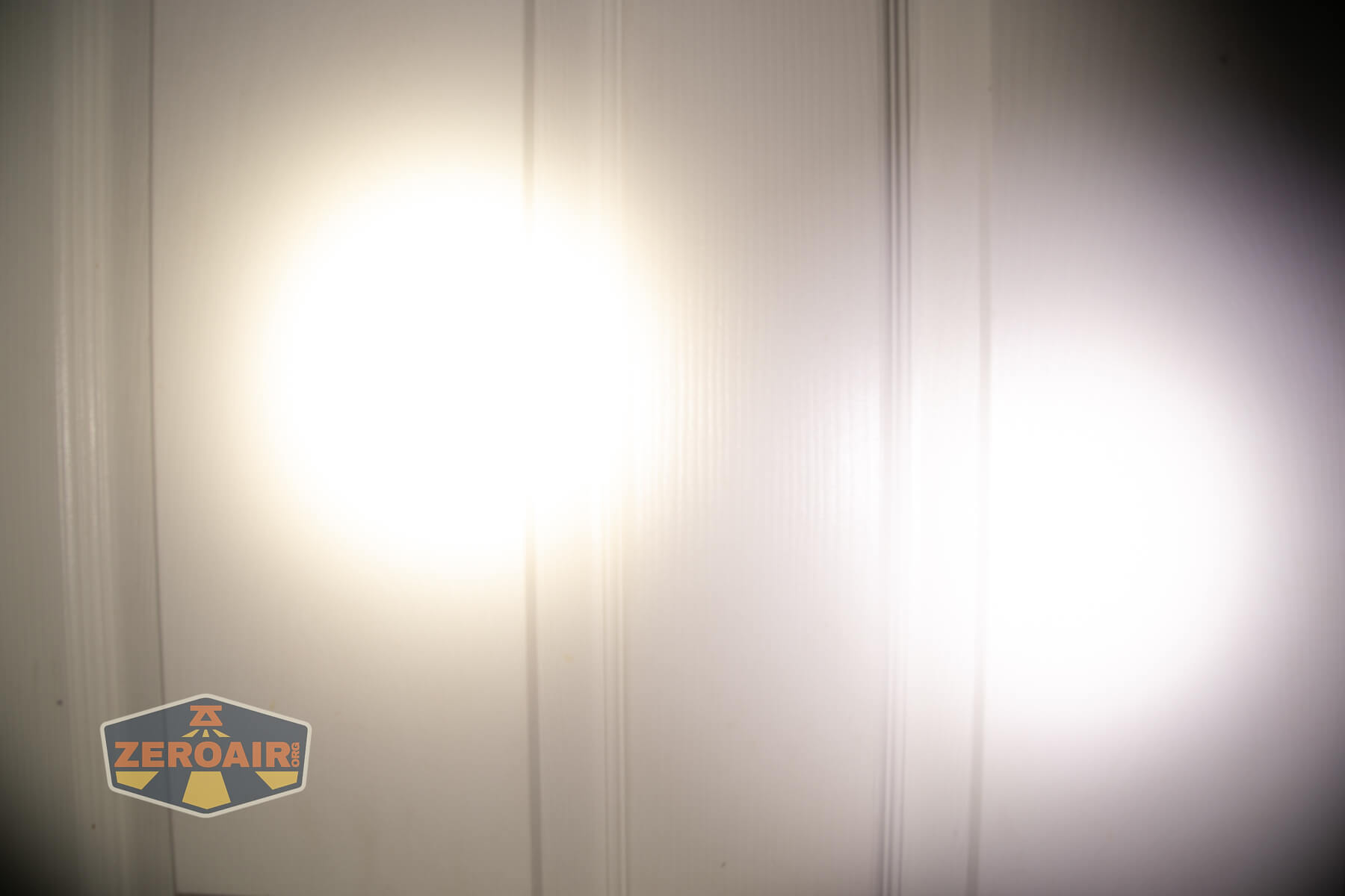 These beamshots always have the following settings: f8, ISO100, 0.3s shutter, and manual 5000K exposure. These photos are taken at floor level, and the beam hits the ceiling around 9 feet away. 14500 first, then AA.