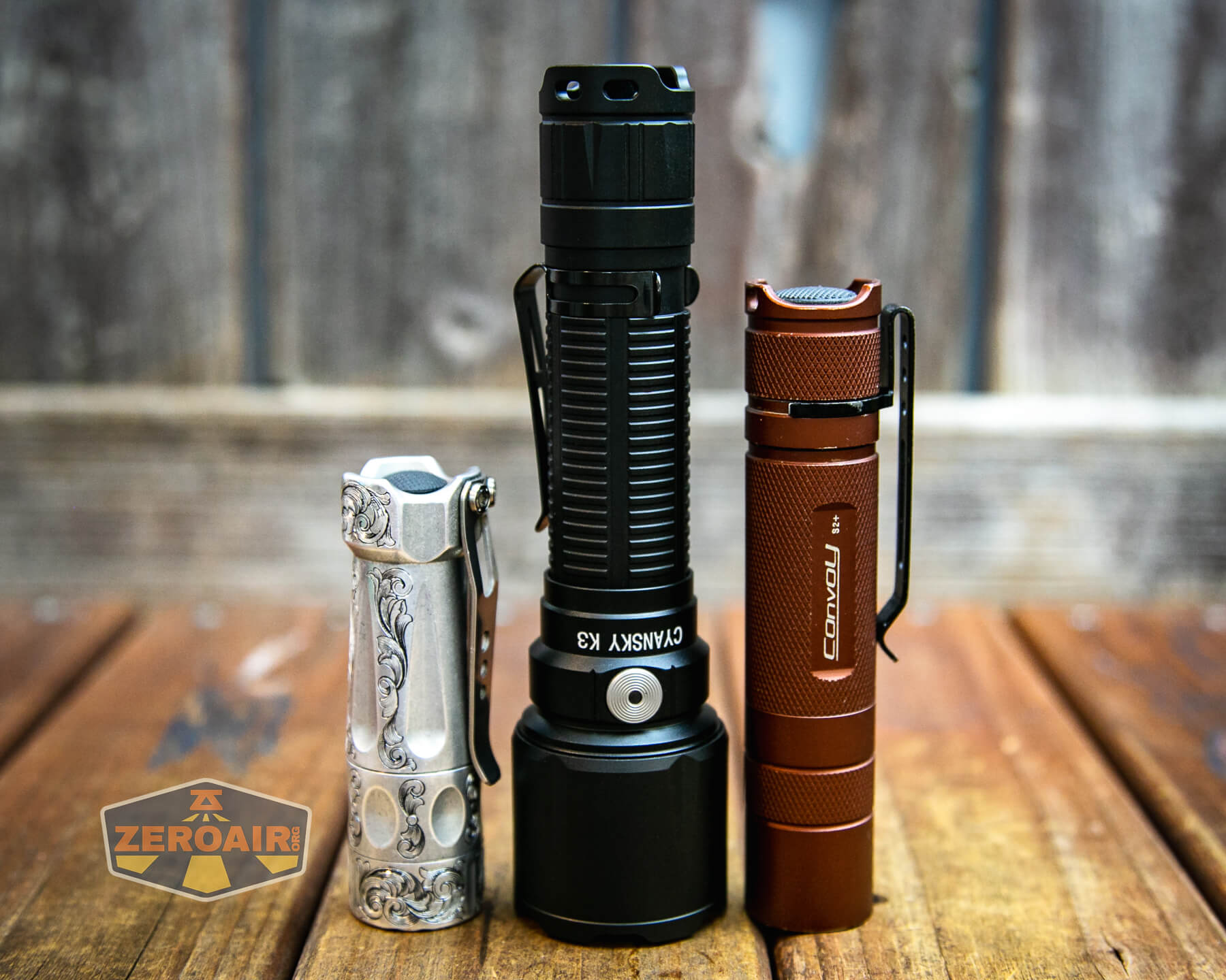 If the flashlight will headstand, I’ll try to show it here. If the flashlight will tailstand, I usually show that here, too.