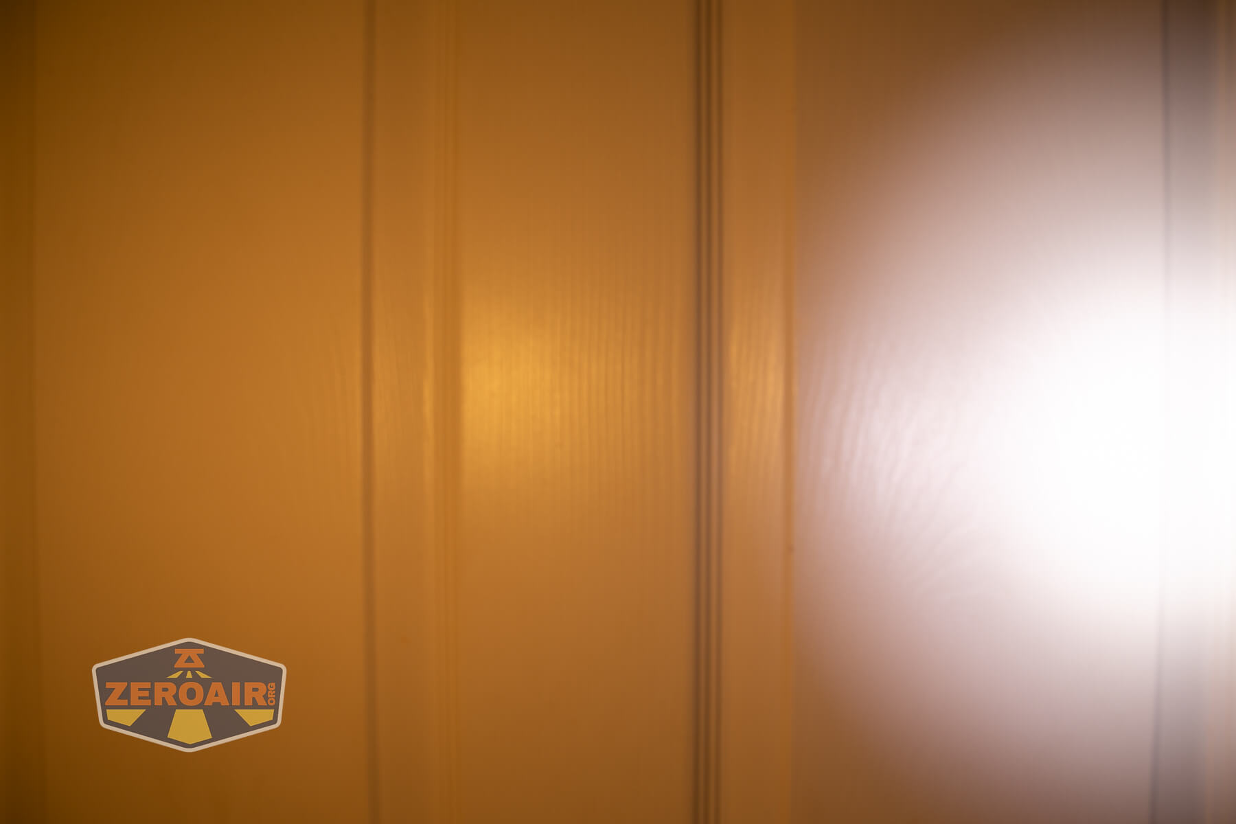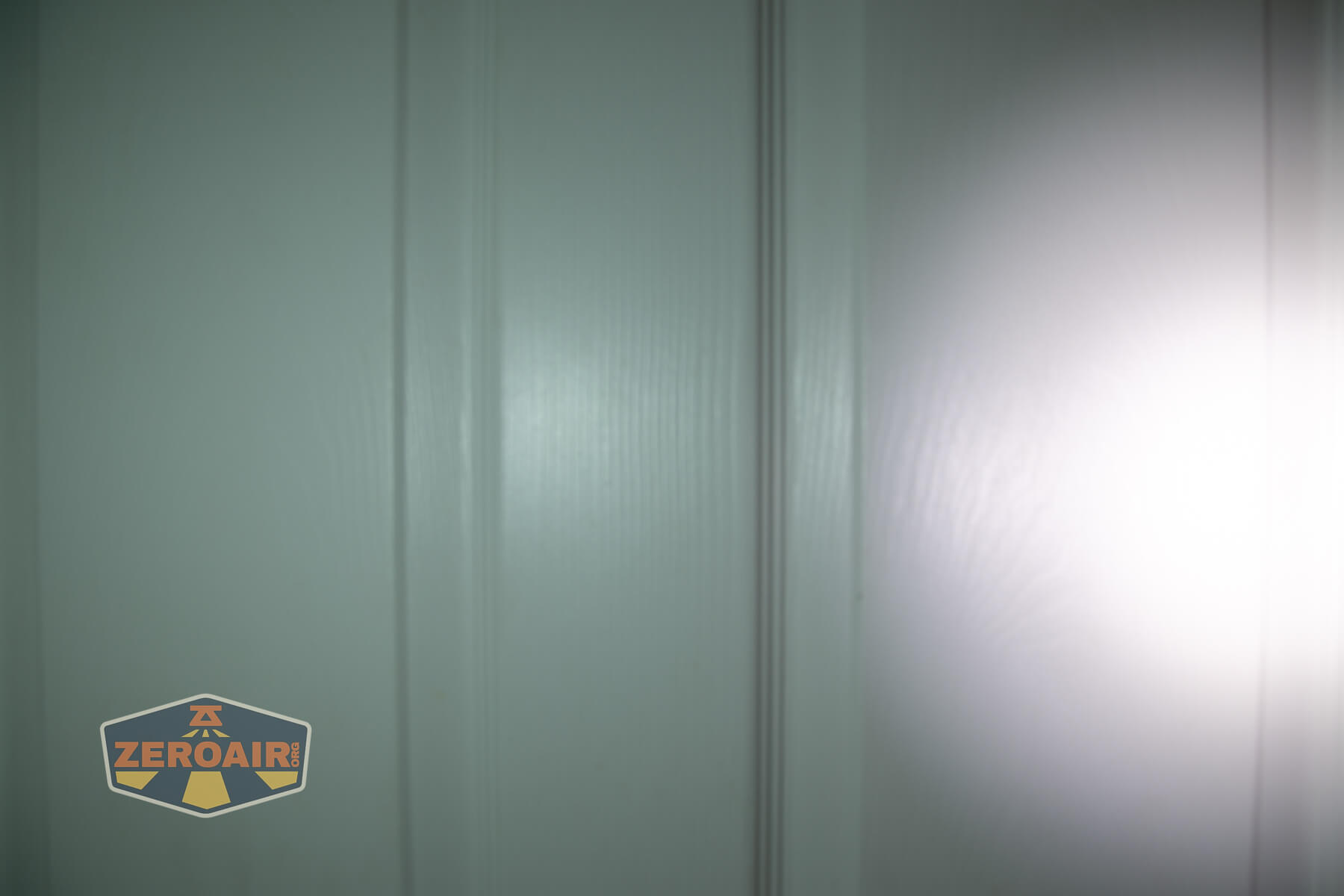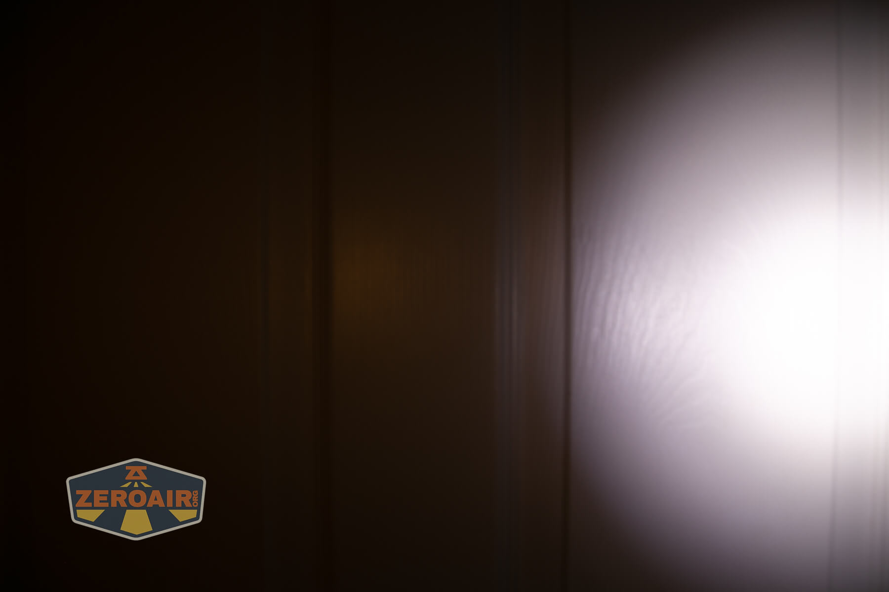 These beamshots always have the following settings: f8, ISO100, 0.3s shutter, and manual 5000K exposure. These photos are taken at floor level, and the beam hits the ceiling around 9 feet away. As above: warm white in the top row. Cool white in the middle row. Red in the bottom row.