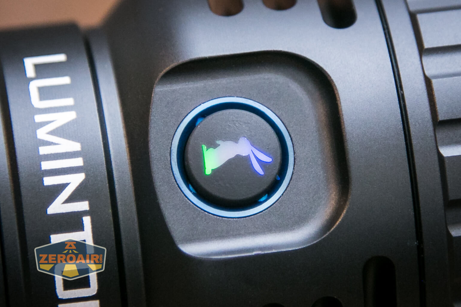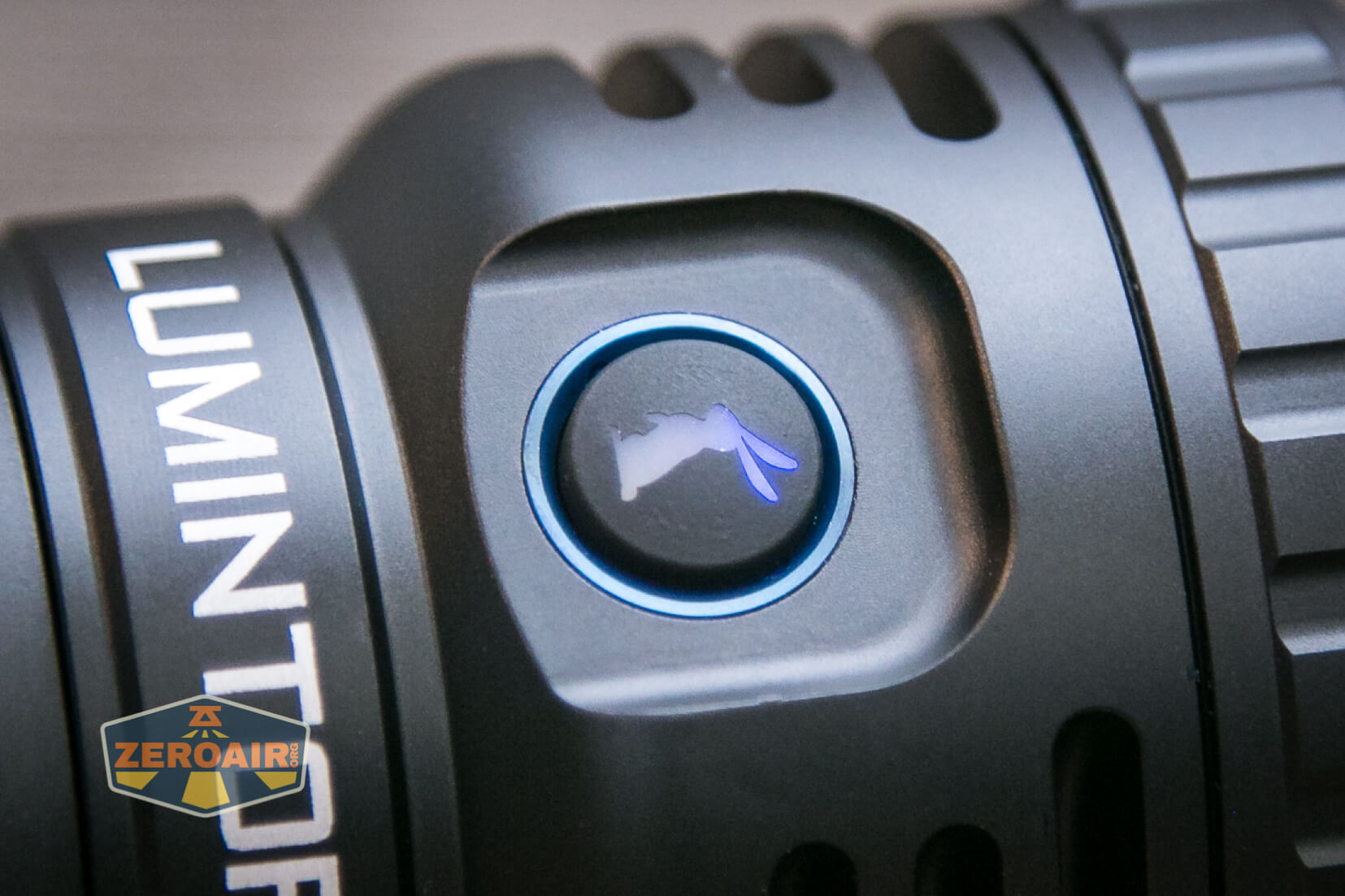 Control of the Lumintop Thor Pro LEP flashlight is through a single e-switch. This switch is on the side of the head, and can indicate in blue and green both.