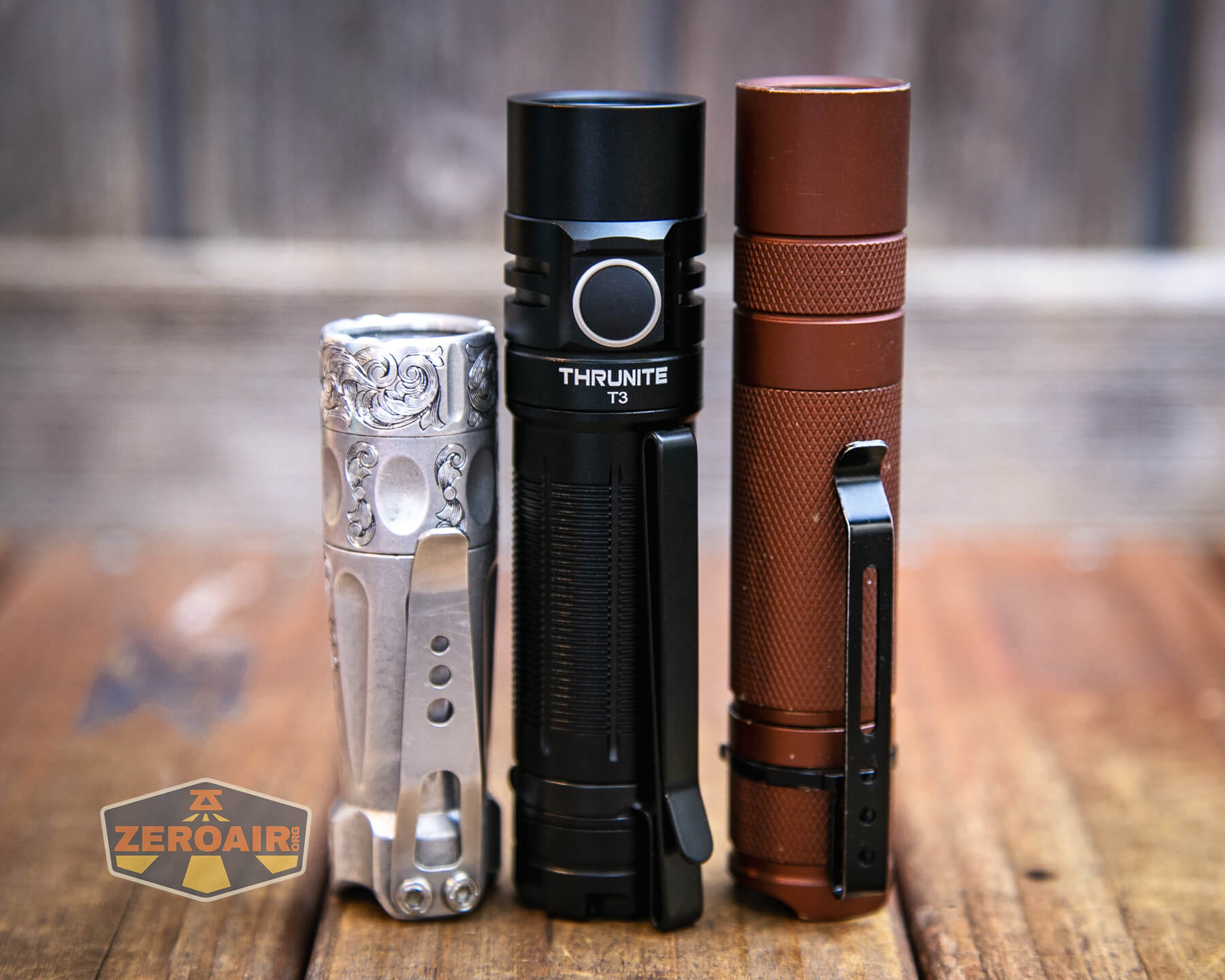 Thrunite is reusing their “ramping” user interface for the T3. This has discrete Firefly and Turbo modes, as well as discrete “Infinite Low” and “Infinite High.” Between those last two, though, you can ramp “infinitely.” If you like ramping, this will be ok. If you’re used to Anduril, this might not be the ramping you want. If you prefer discrete modes (as I do), then you’ll probably just be very “eh” about this user interface (as I am). It’s ok.