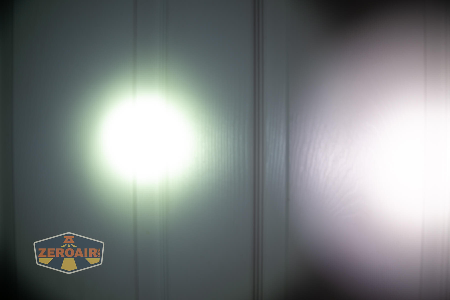 Here’s the test light with the venerable Convoy S2+. Mine is a custom “baked” edition Nichia 219b triple. A very nice 18650 light!