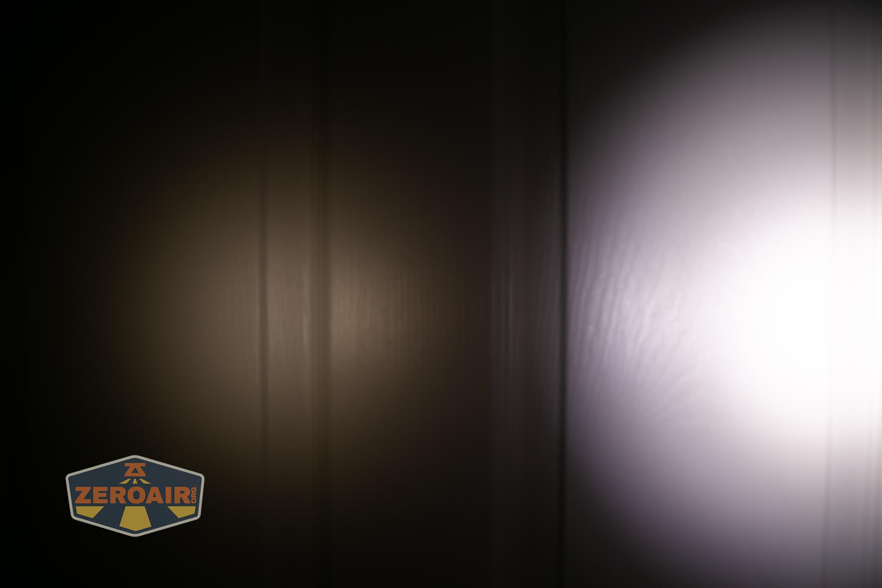 Here’s the test light with the venerable Convoy S2+. Mine is a custom “baked” edition Nichia 219b triple. A very nice 18650 light!