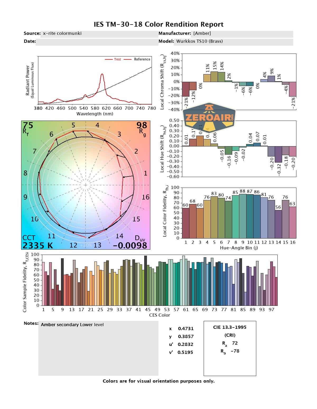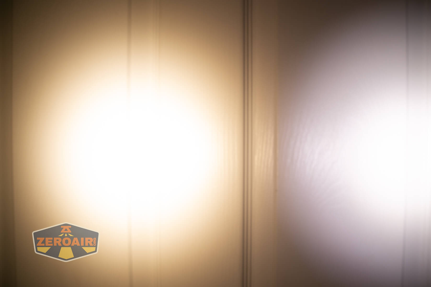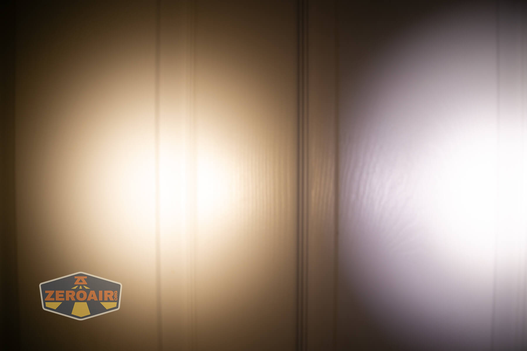 Rated at 4000K, the output is in that range for sure. From the lower output (at left) of 3500K to the highest output at around 4200K, 4000K is a good rating, and reasonable. I’m also pleased to say that these CSP emitters are very high CRI! Also shown below are the two steady amber output levels.