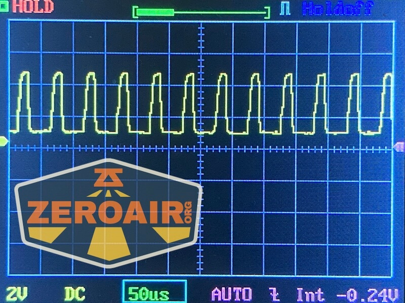Then there’s the Ultrafire WF-602C flashlight, which has some of the worst PWM I’ve seen. It’s so bad that I used a post about it to explain PWM! Here are multiple timescales (10ms, 5ms, 2ms, 1ms, 0.5ms, 0.2ms) to make comparing this “worst” PWM light to the test light easier. That post also explains why I didn’t test the WF-602C at the usual 50us scale.