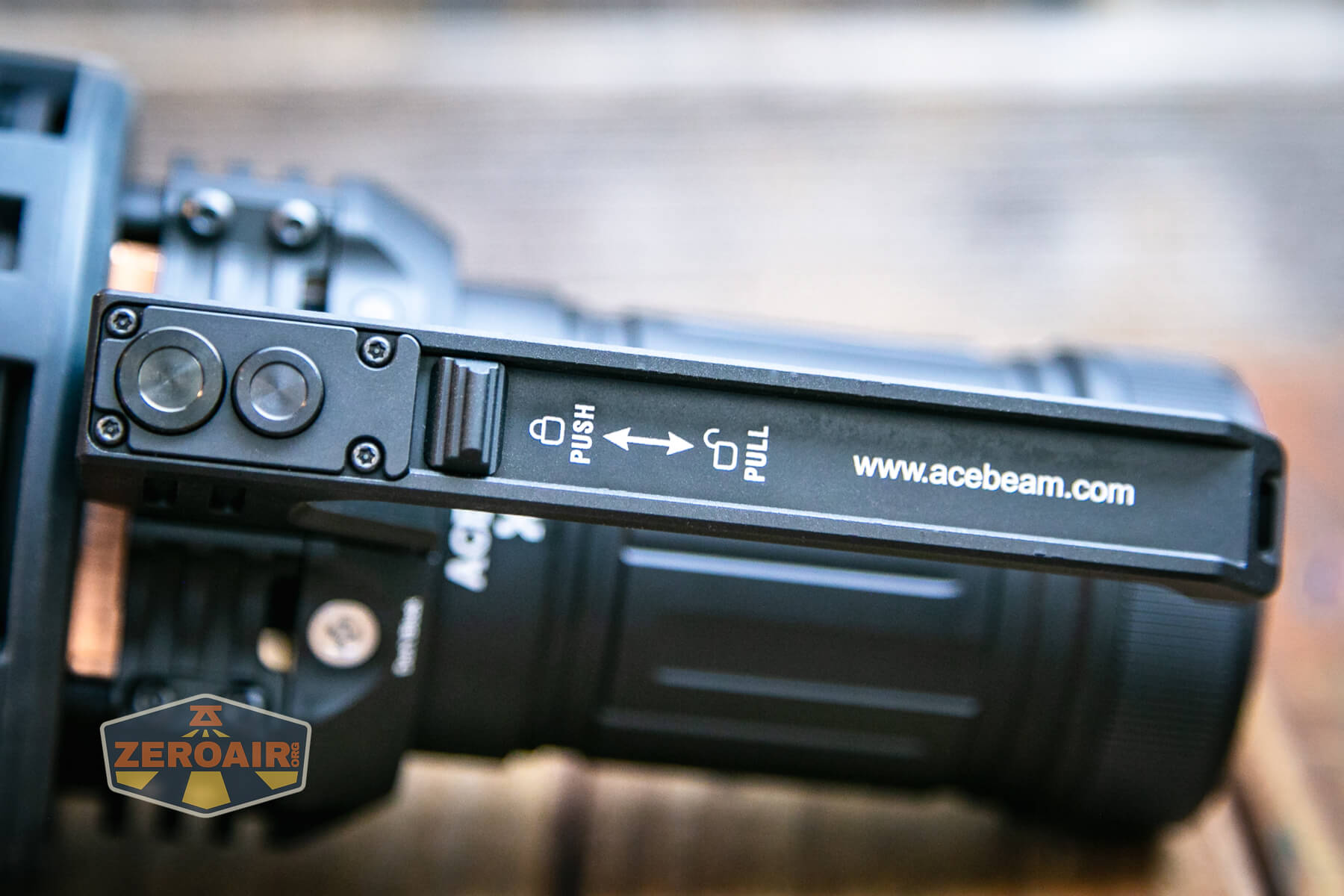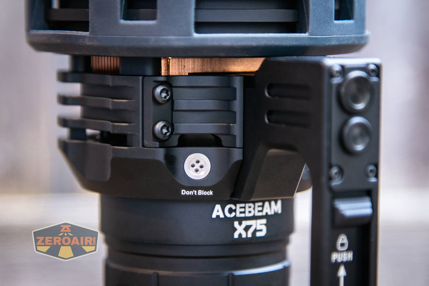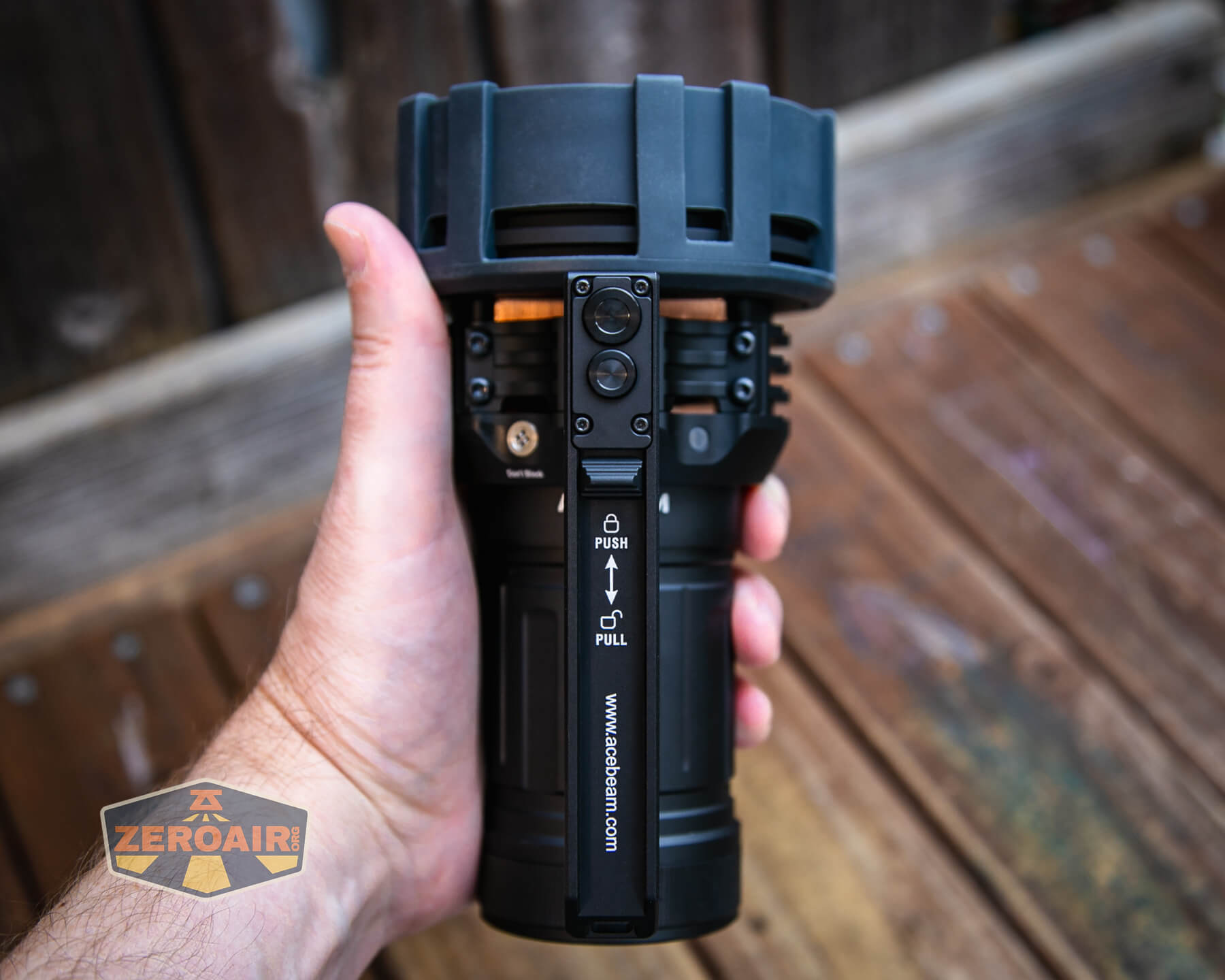 As stated above, the switch for the Acebeam X75 brightest powerbank flashlight is on the handle, and there are no other switches. That means that the handle is required for any operation of the light. That’s fine, and I like that as much as if I had to hunt around on the light for a switch while holding the handle.