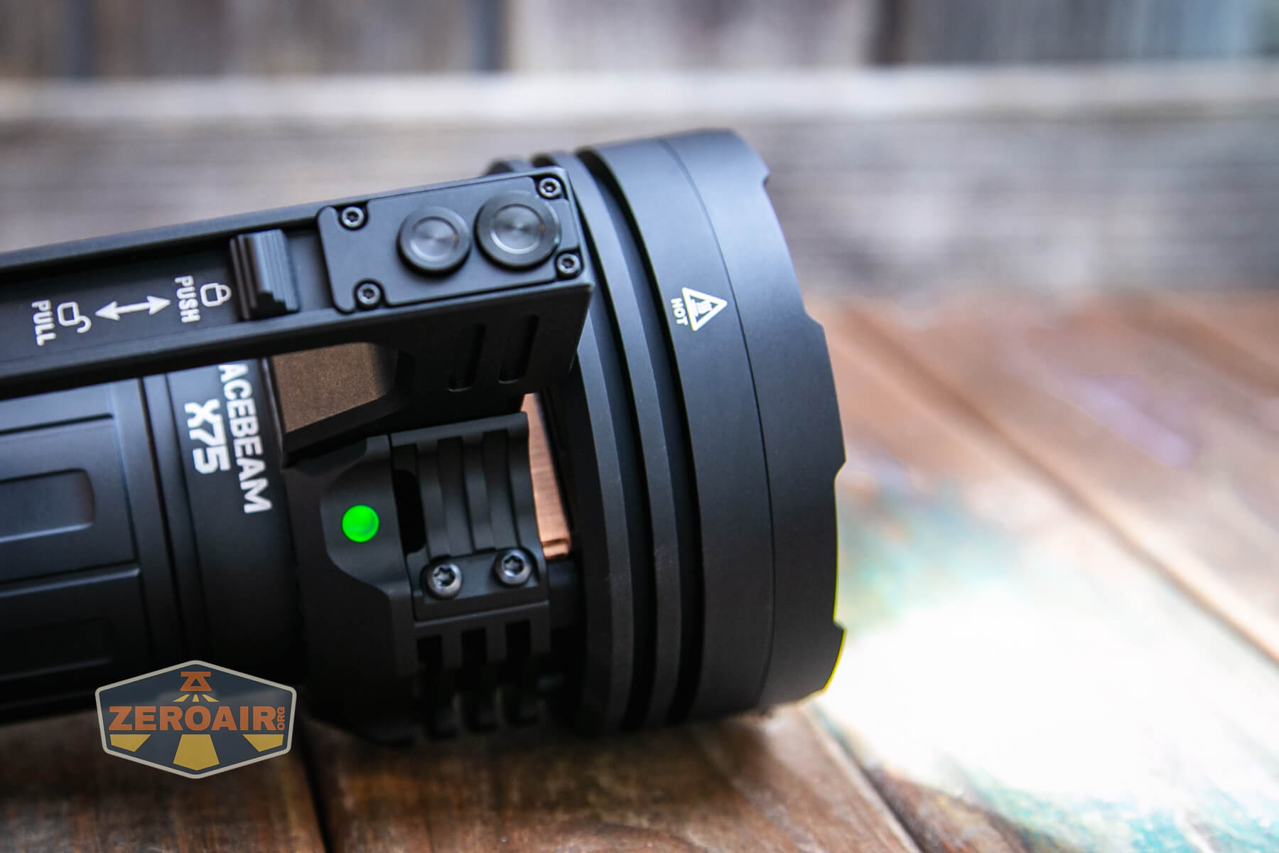 When the Acebeam X75 brightest powerbank flashlight is in use, there’s a very nice indicator on the body to the right of the switches.