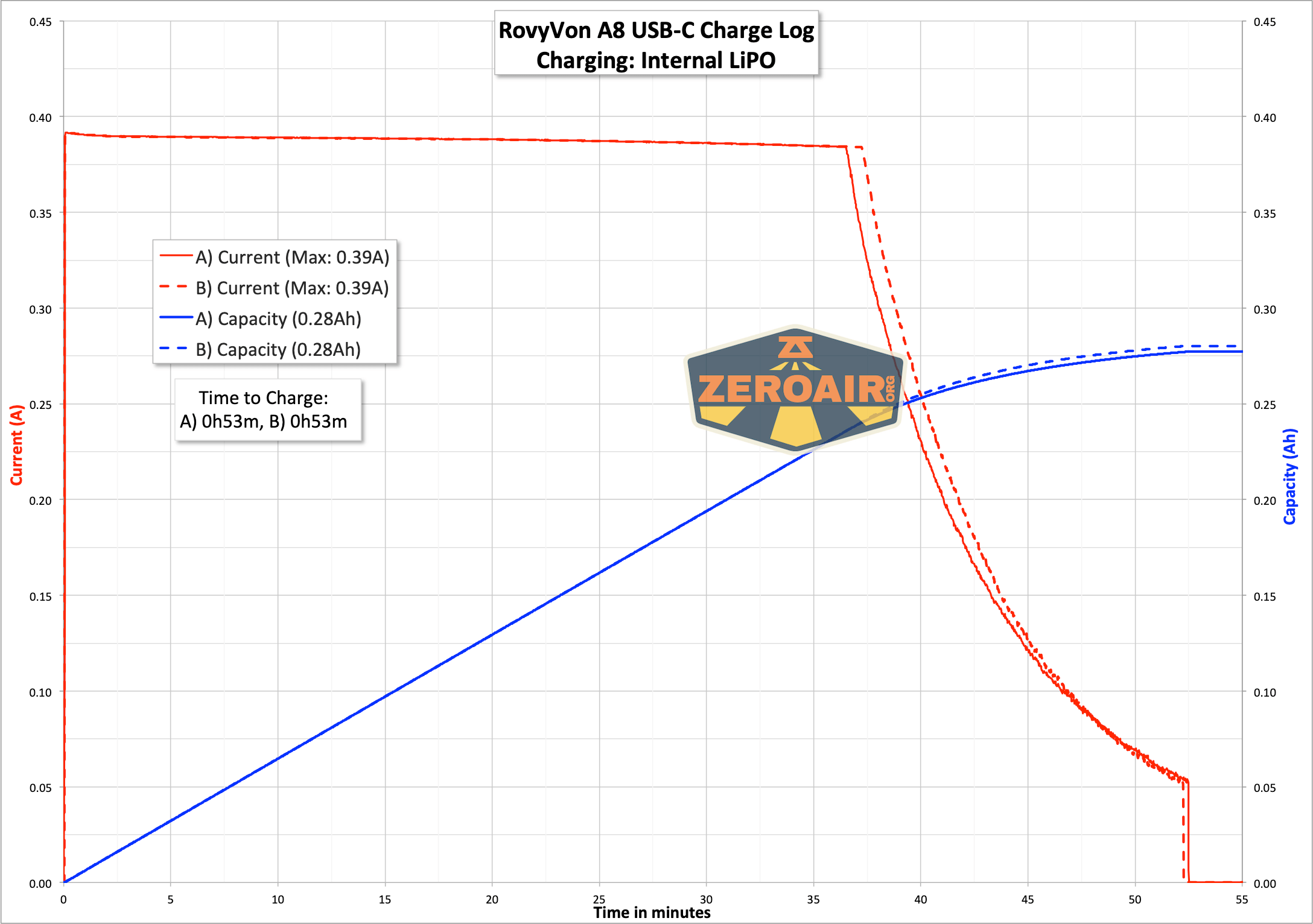 C to C charging works on my other similar models, but I haven’t tested it on the A5. Here’s a graph from testing of the A8!