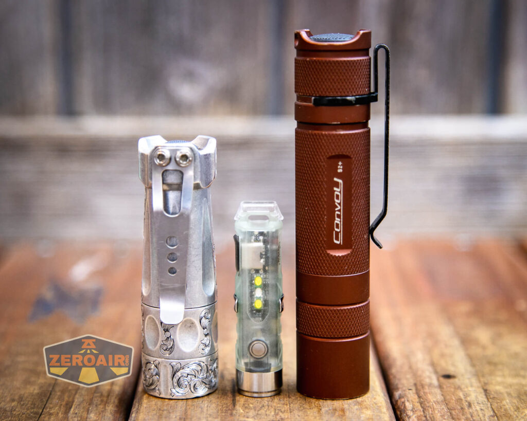 Also above is the light beside my custom engraved TorchLAB BOSS 35, an 18350 light. I reviewed the aluminum version of that light in both 35 and 70 formats.