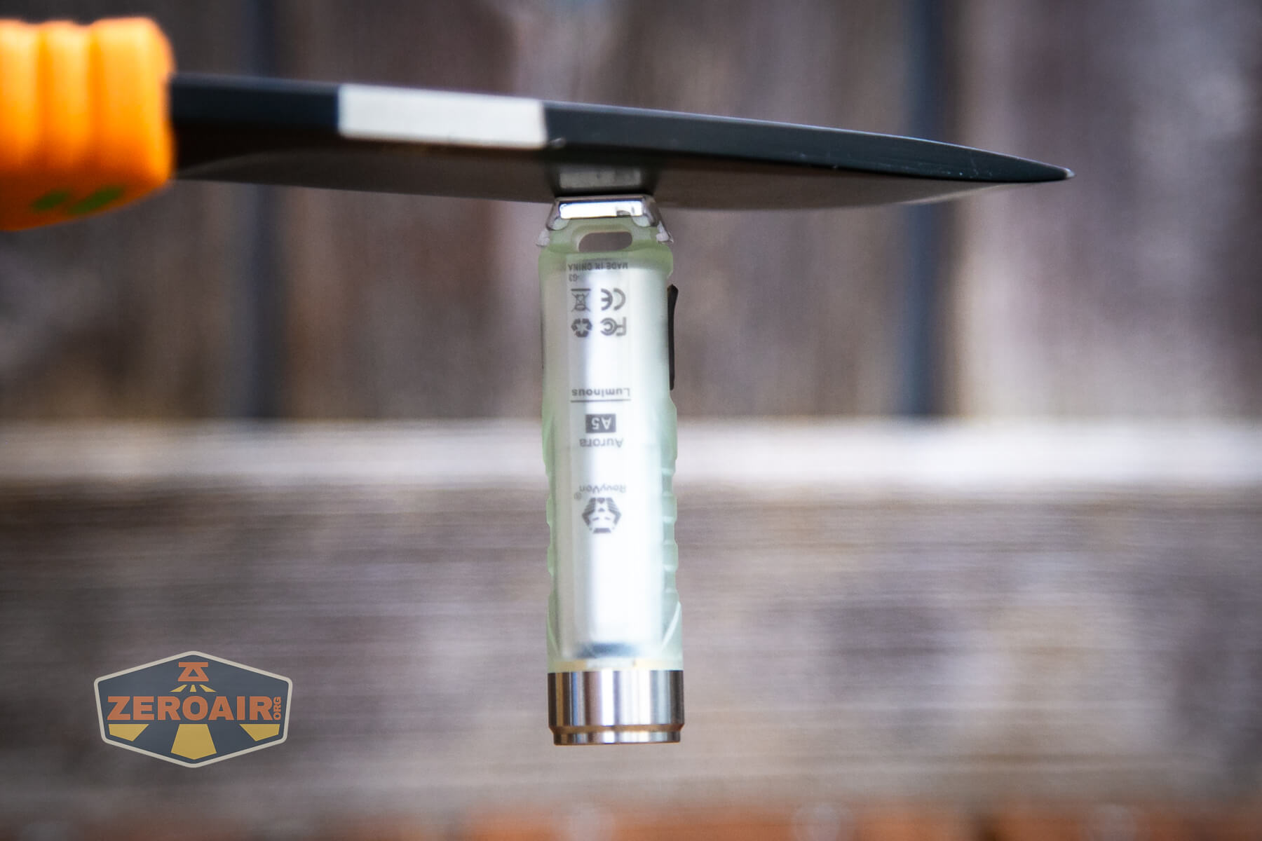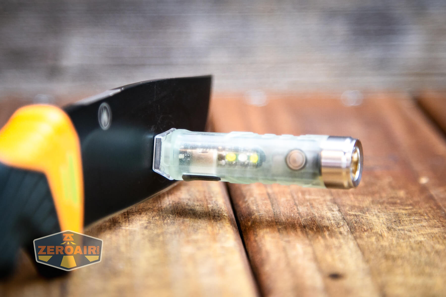 As with other Auroras, the RovyVon Aurora A5 keychain flashlight has a pocket clip. This does not ship attached to the light, and it has a new magnetic side feature! The magnet is perfectly strong for holding the light in any orientation.