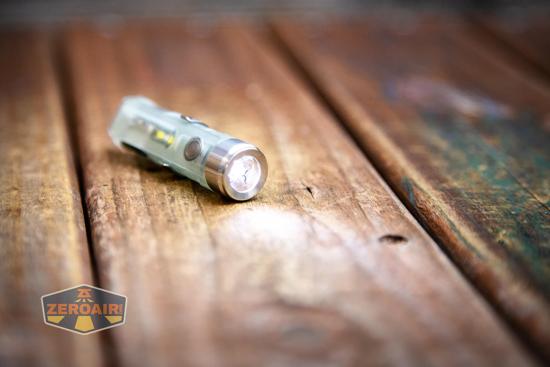 The main emitter here is a Nichia 219c with 5000K and 90CRI. That’s great! The tiny optic makes the beam very usable, too.