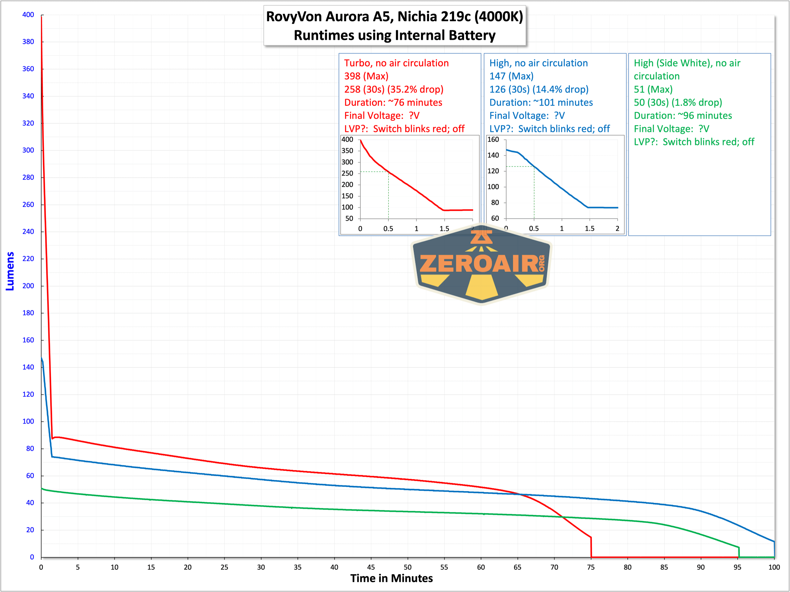 | Mode | Mode Claimed Output (lm) | Claimed Runtime | Measured Lumens |