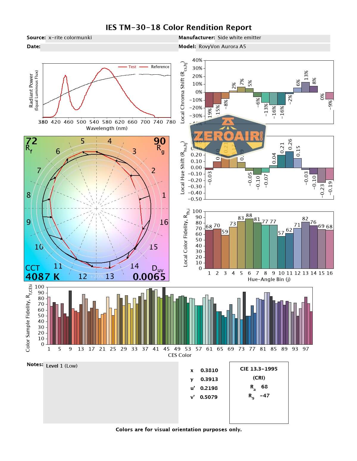 LED Color Report (CRI and CCT)