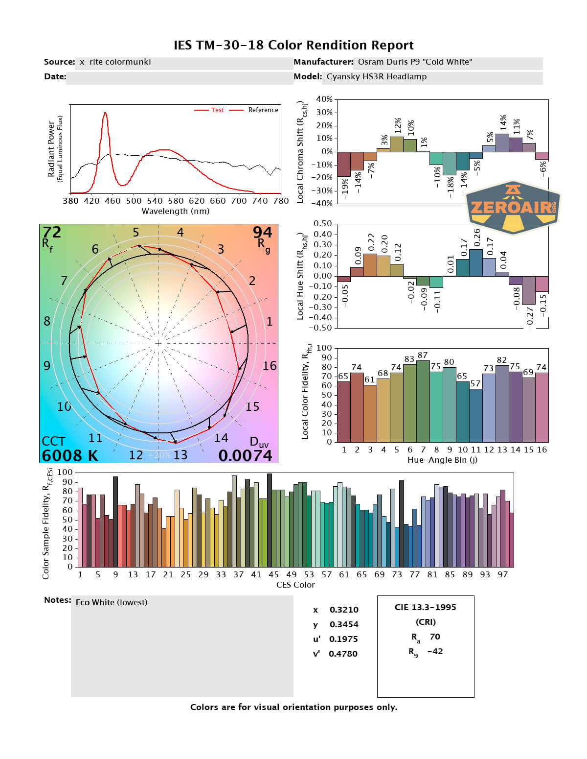 LED Color Report (CRI and CCT)