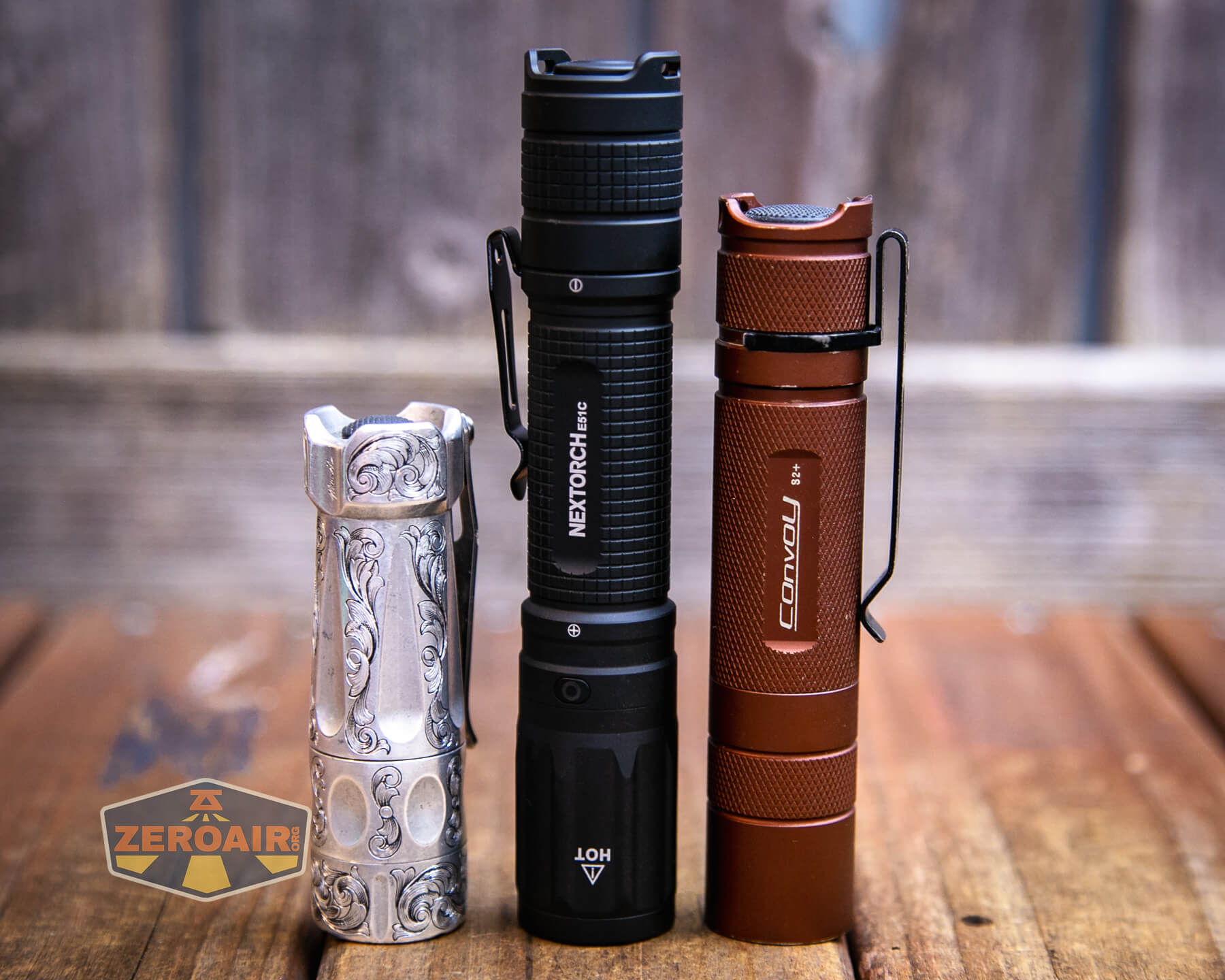 If the flashlight will headstand, I’ll try to show it here. If the flashlight will tailstand, I usually show that here, too.