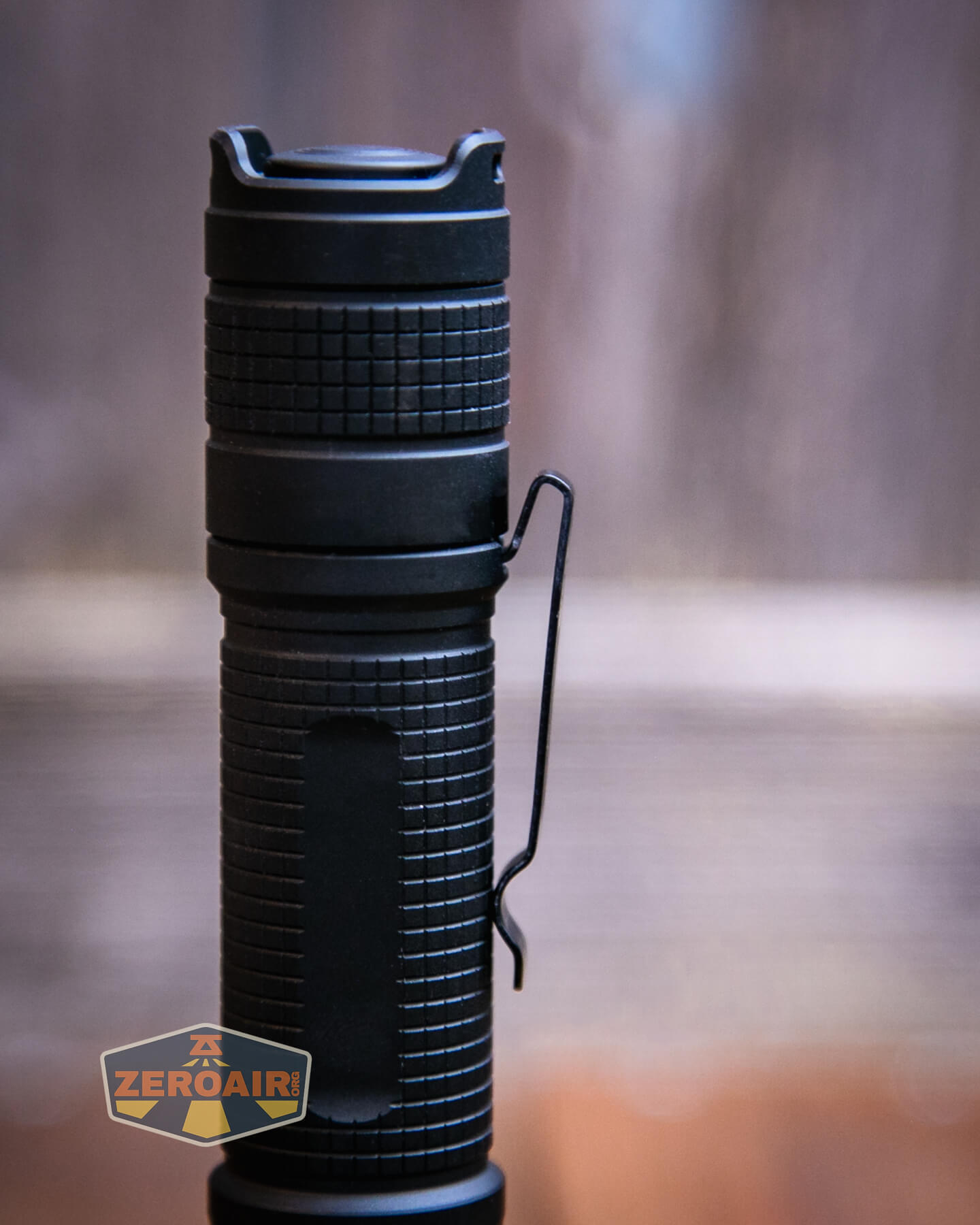 A pocket clip is available (and attached) on the Nextorch E51C rechargeable flashlight. This is a very nice-looking friction-fit (sort of) pocket clip.