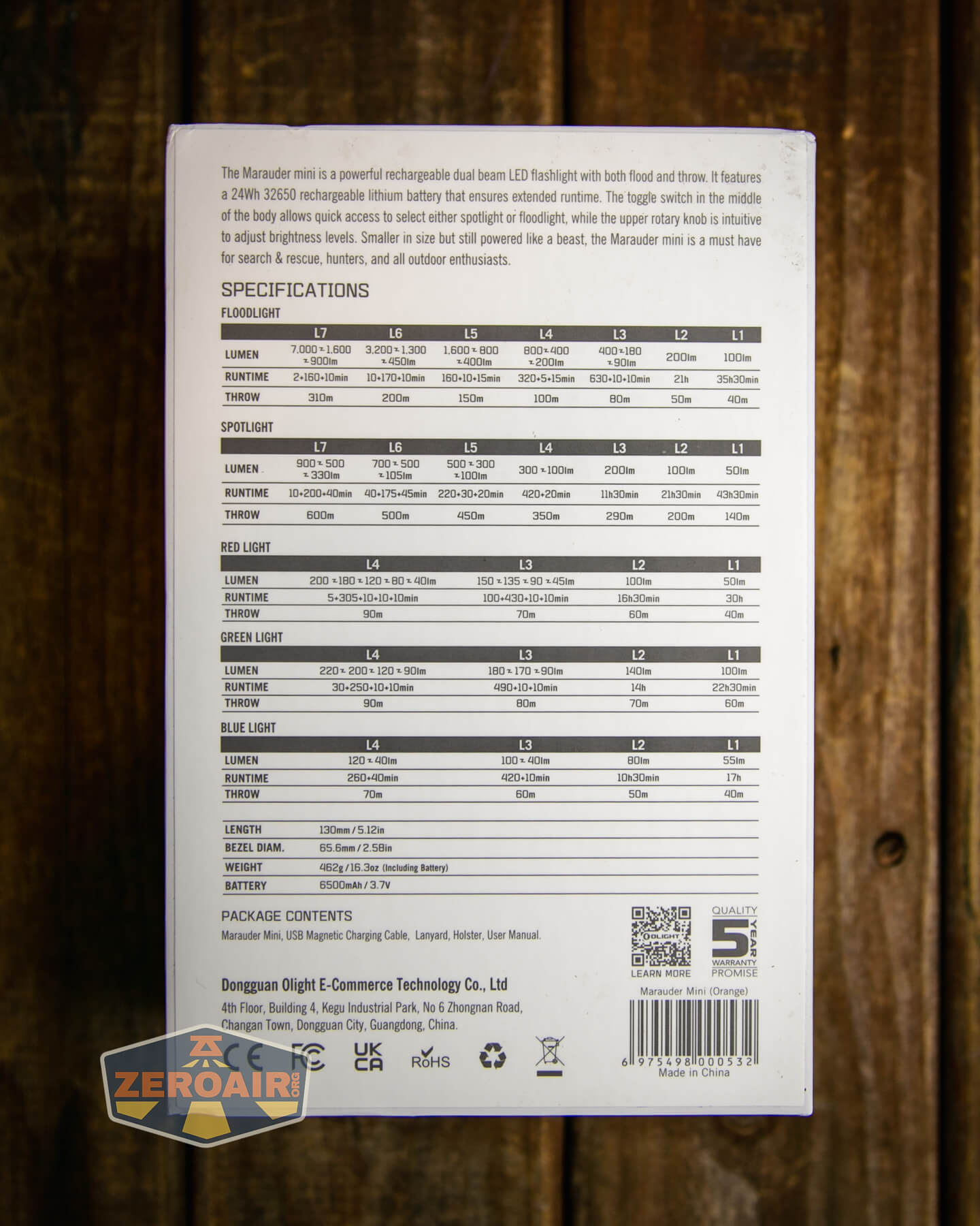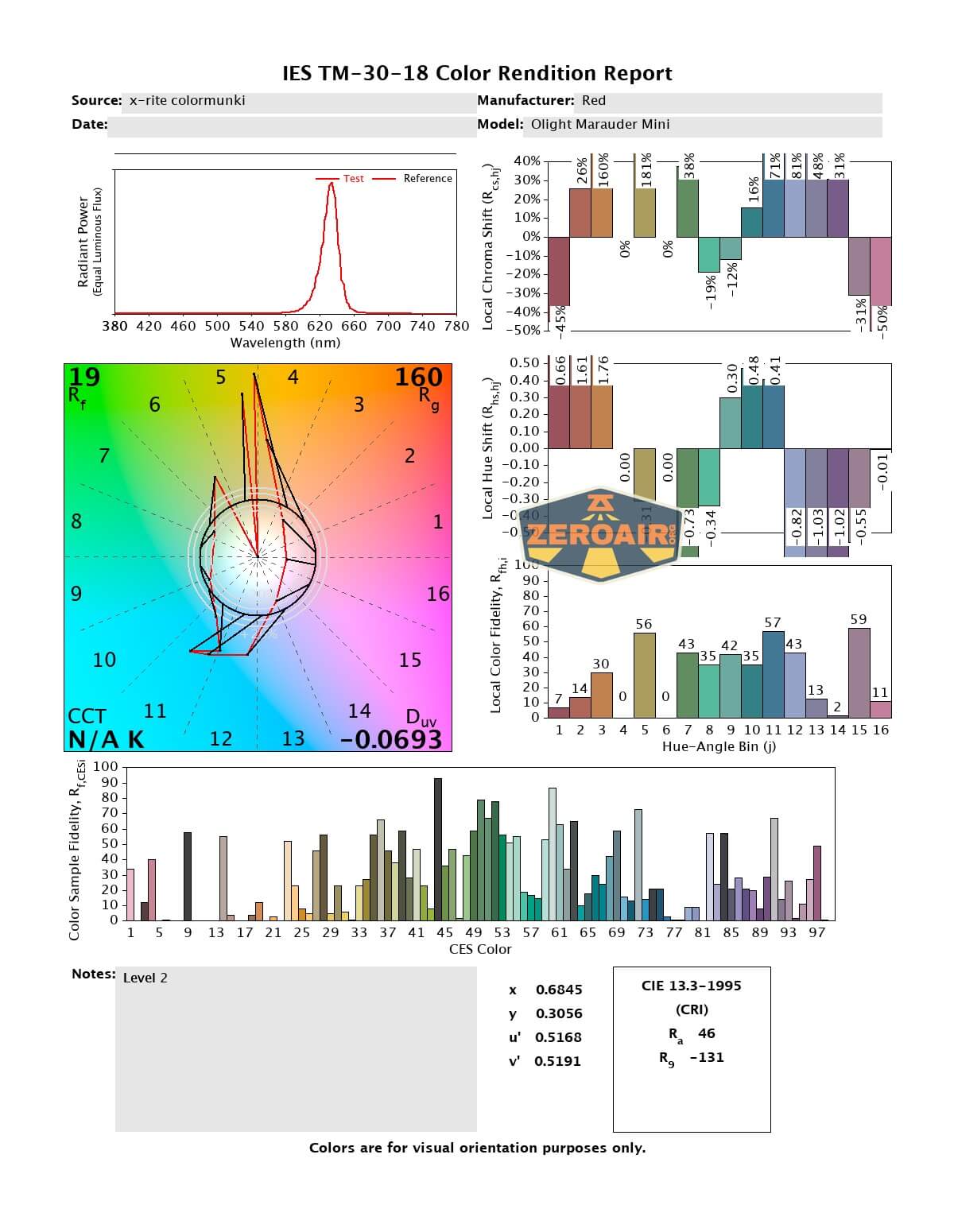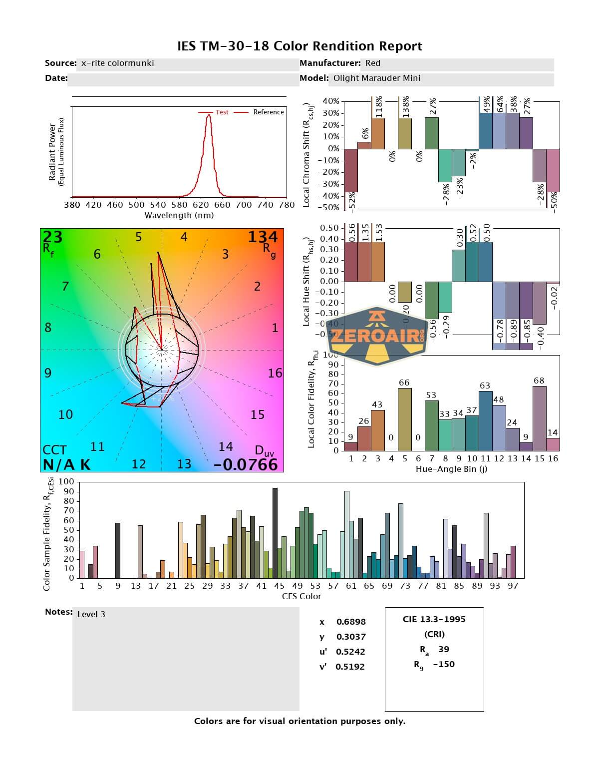 I can’t see where Olight has any specific definitions of what the emitters in the Olight Marauder Mini flashlight are. At the very least, I can guess that the flood emitters are Osram P9. Olight does state the CCT. Flood emitters are 5500 to 6000K, and the throw emitter is 5000-6000K.