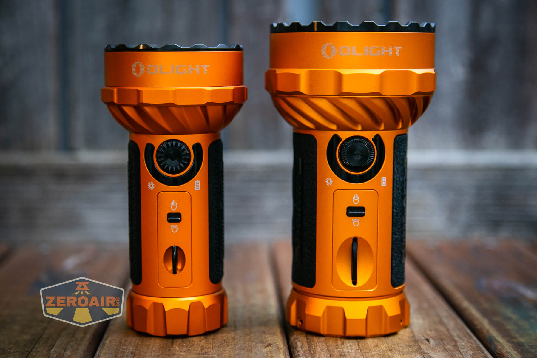 Below is the Olight Marauder Mini flashlight (left) alongside the Marauder 2 (right).