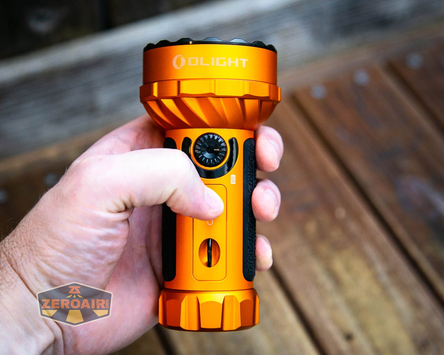 The Marauder 2 had “fantastic heft.” The Olight Marauder Mini flashlight has that too, but in a “more manageable” format. It carries a bit better because it’s not quite so big.