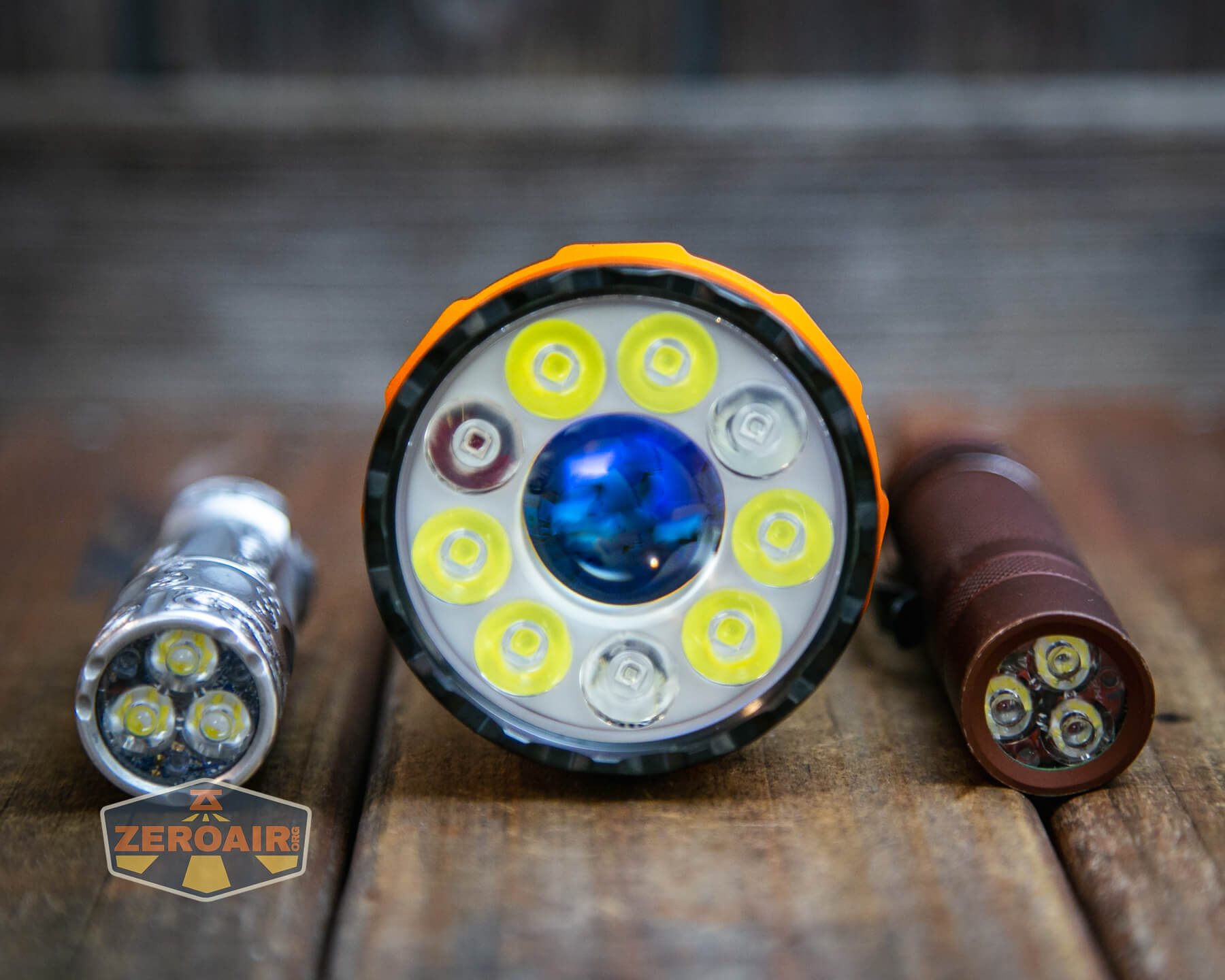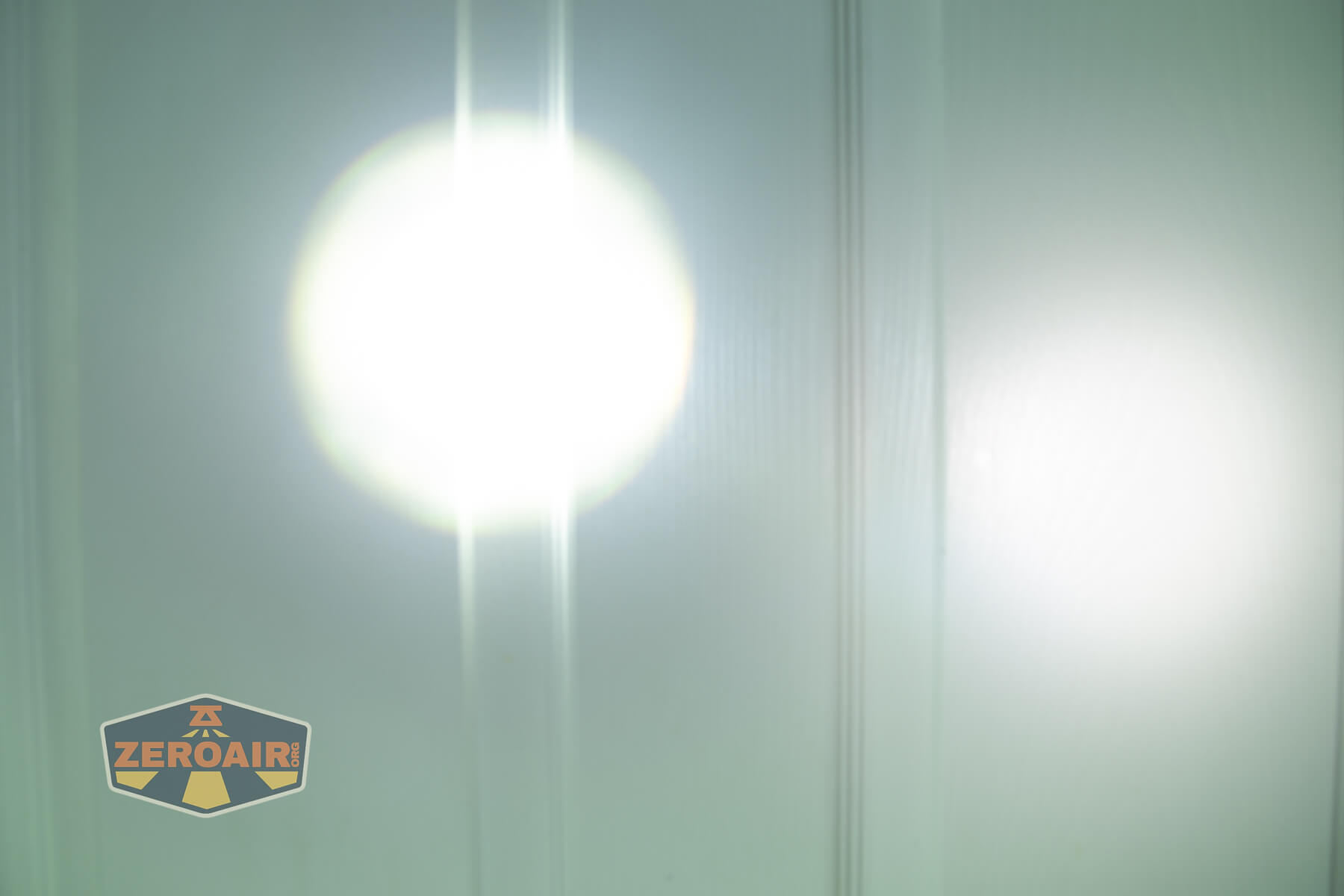 Here’s the test light with the venerable Convoy S2+. Mine’s a custom “baked” edition Nichia 219b triple. A very nice 18650 light.