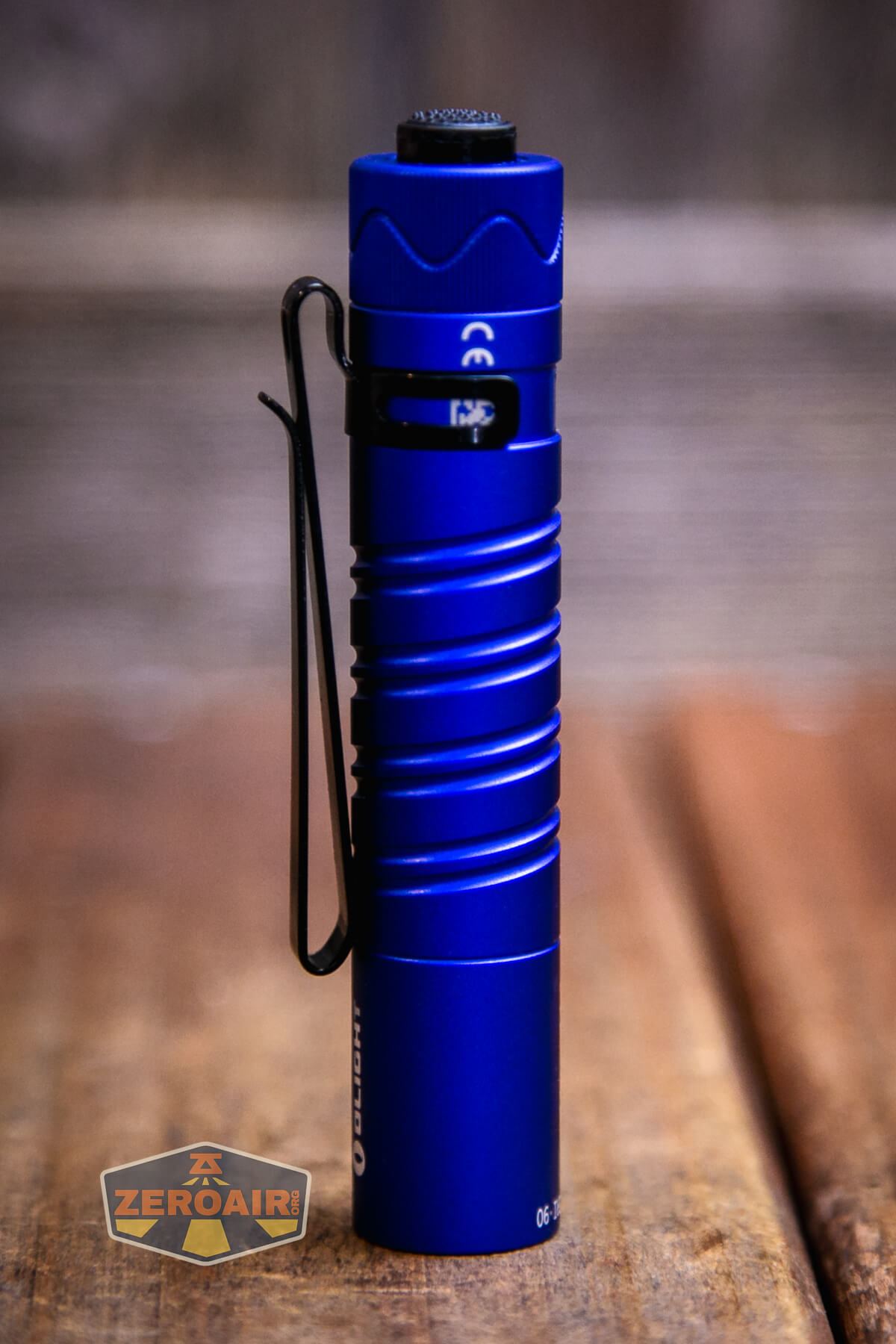 The Olight i5R EOS HCRI flashlight runs on the included cell, which I’ve already talked about at length. This is a lithium-ion cell, but not a 14500. Or I’ll call it a 14500 as Olight does, but I’m going to put it in quotes – “14500.” It’s not really a 14500 cell, and saying it is implies that normal (4.2V) 14500 cells will work in the i5R. They might work but they aren’t recommended or supported (ie they might fry your electronics or they might be fine – do you want to risk it is the question.)