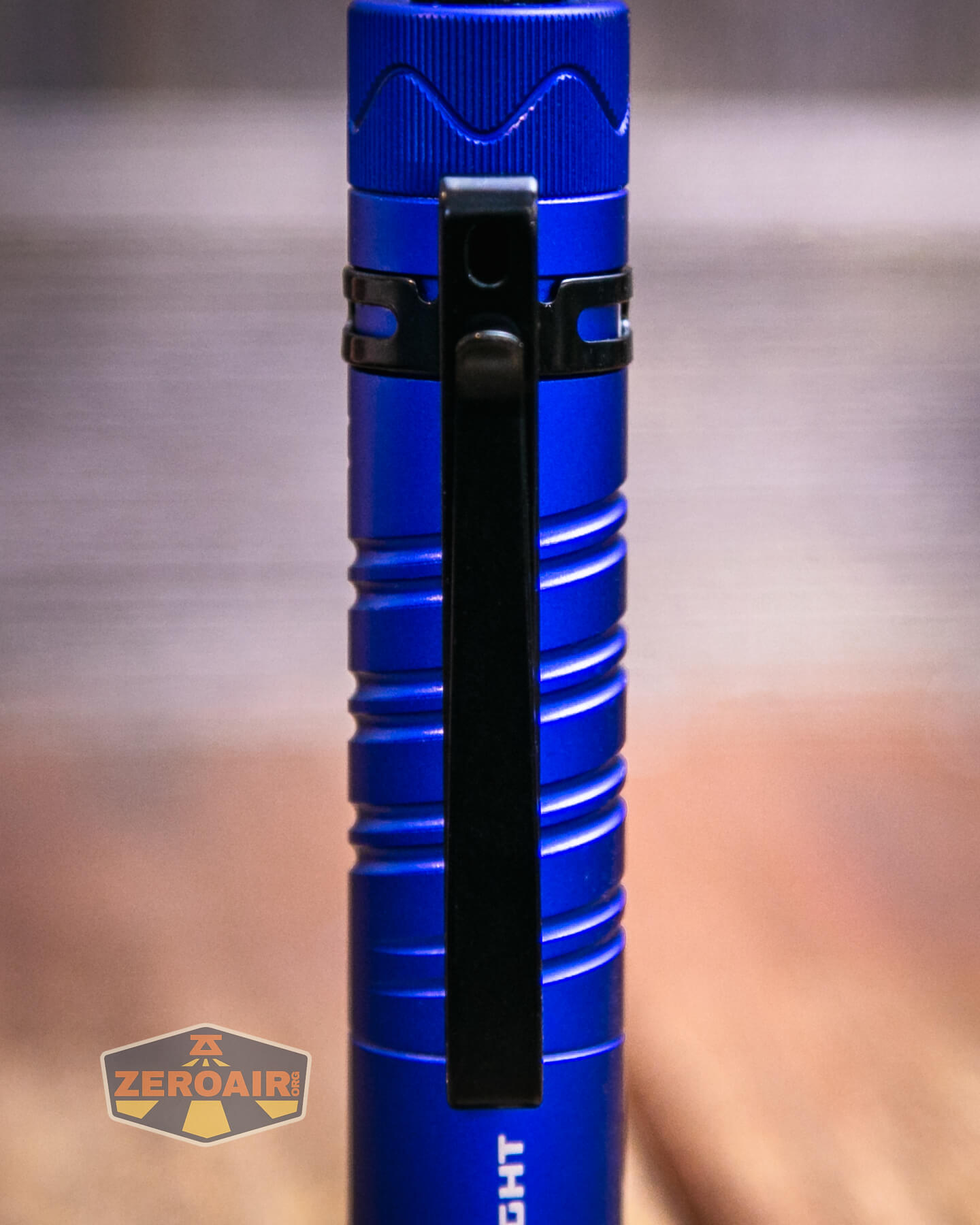 The included way to carry this light is the two-way friction-fit clip. This clip is black and matches the other appointments on the i5R EOS fairly well. I don’t typically love two-way clips, but this is by no means the worst iteration I’ve seen. It’s fairly slim (noteworthy because the bulk of these two-ways is one big complaint of mine).