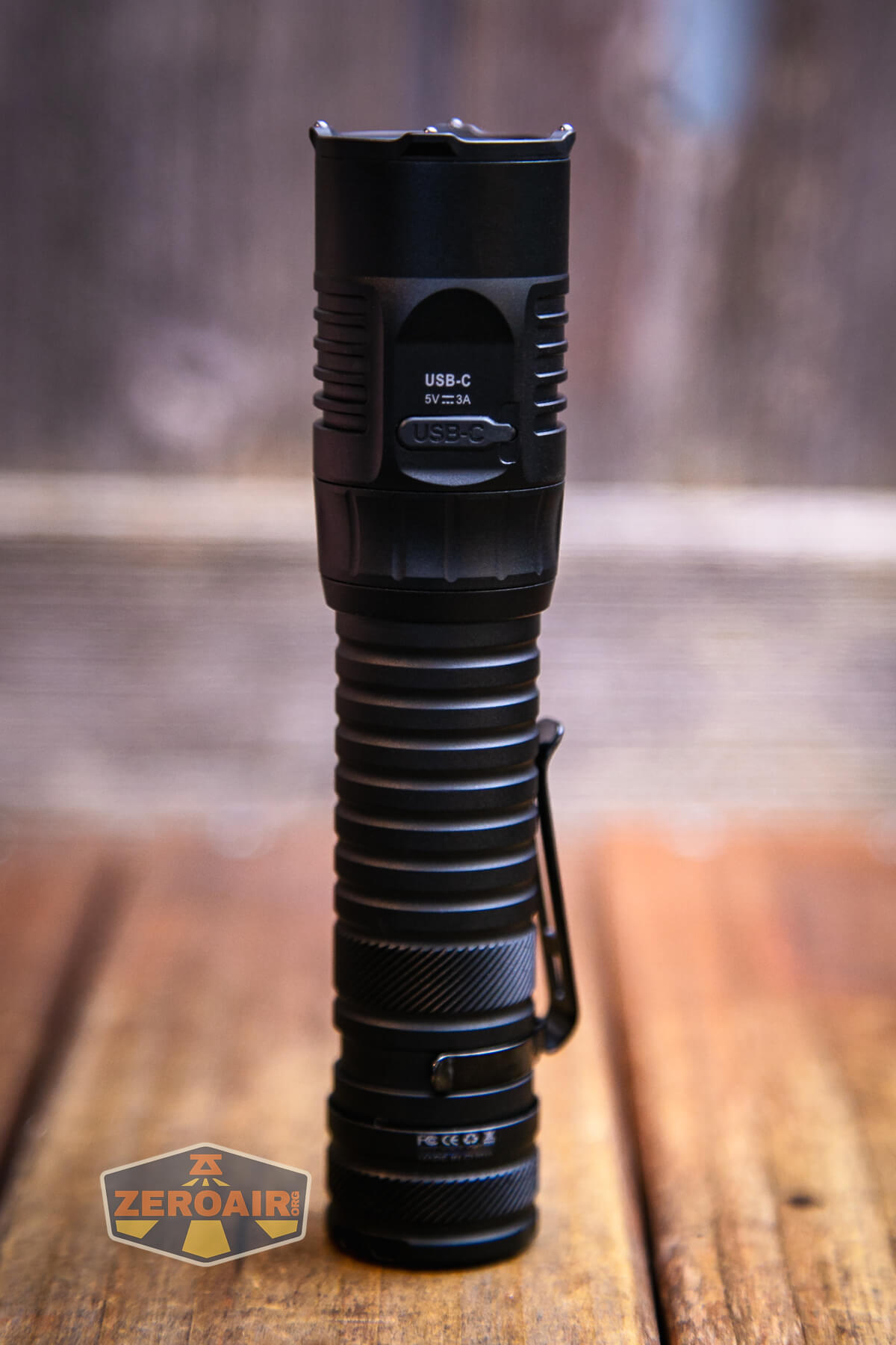 A nice feature that RovyVon has kept (as many of their other lights have it, too) is charging.  There’s a USB-C port on the head (opposite to the switch), and it has a press-in rubber cover.  There’s a spare cover, too.