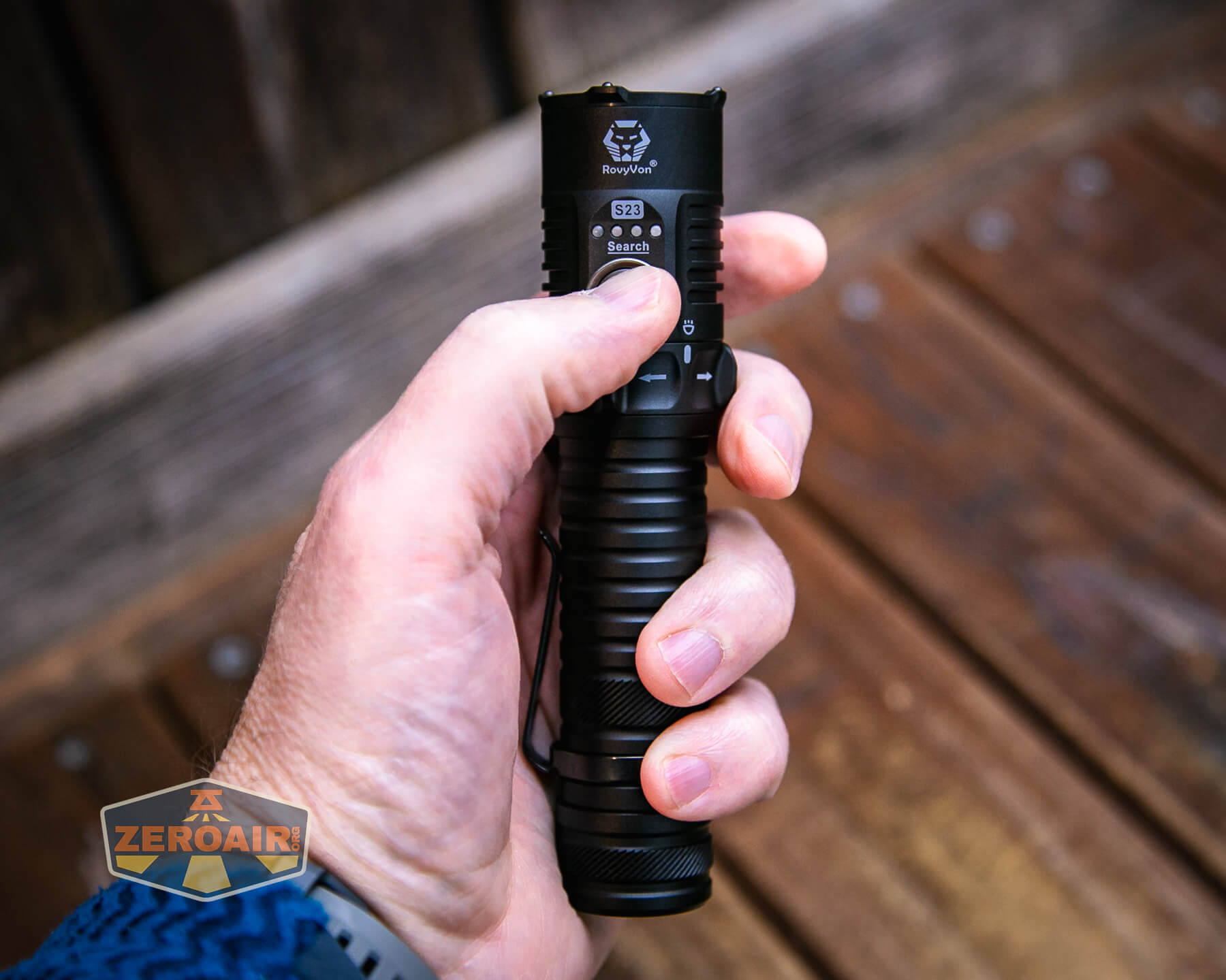There’s a lot going on with the RovyVon Search S23 flashlight. I’d say most features you could think of that this light might have, it seems to have. That’s not a slam on build quality, of course – build quality is great.