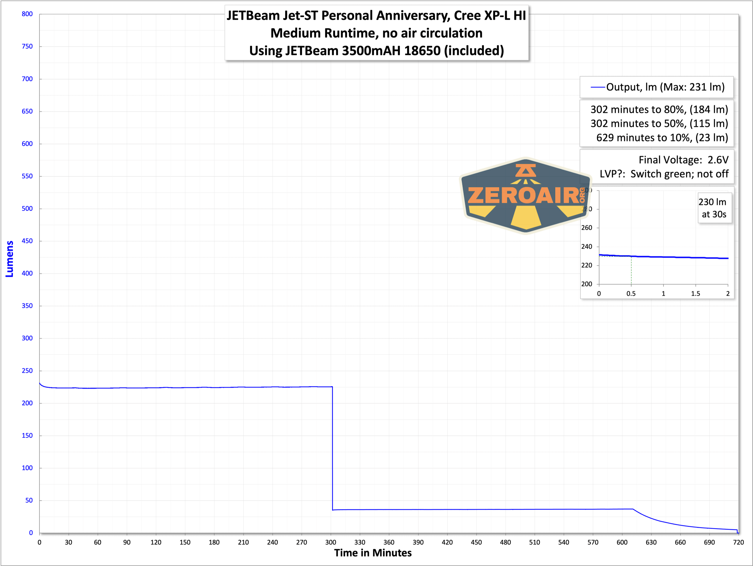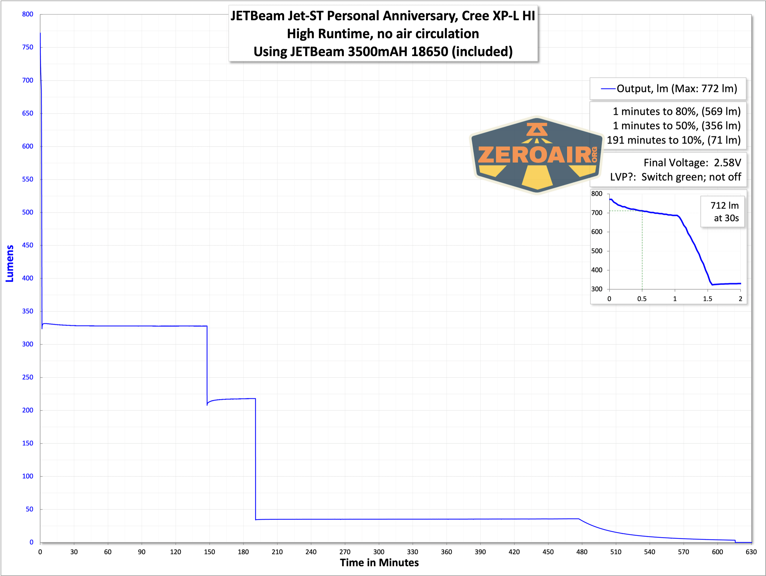 JETBeam Jet-ST Personal Flashlight runtime graphs