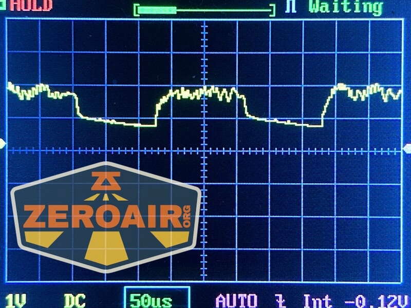 Here you can see a “baseline” – a chart with almost no light hitting the sensor. Then there’s the Ultrafire WF-602C flashlight, which has some of the worst PWM I’ve seen. It’s so bad that I used a post about it to explain PWM! Here are multiple timescales (10ms, 5ms, 2ms, 1ms, 0.5ms, 0.2ms) to make comparing this “worst” PWM light to the test light easier. That post also explains why I didn’t test the WF-602C at the usual 50us scale.