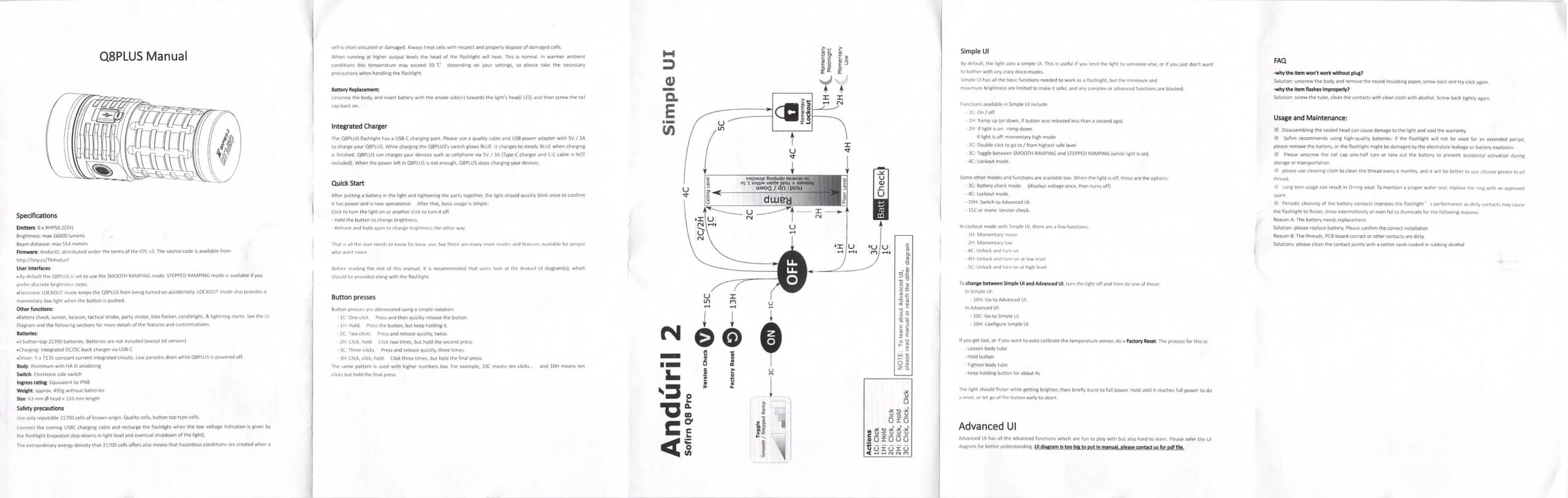 Unlike the Sofirn Q8 which has NarsilM, but like the Q8 Pro, this Q8 Plus has the Andúril2 user interface.