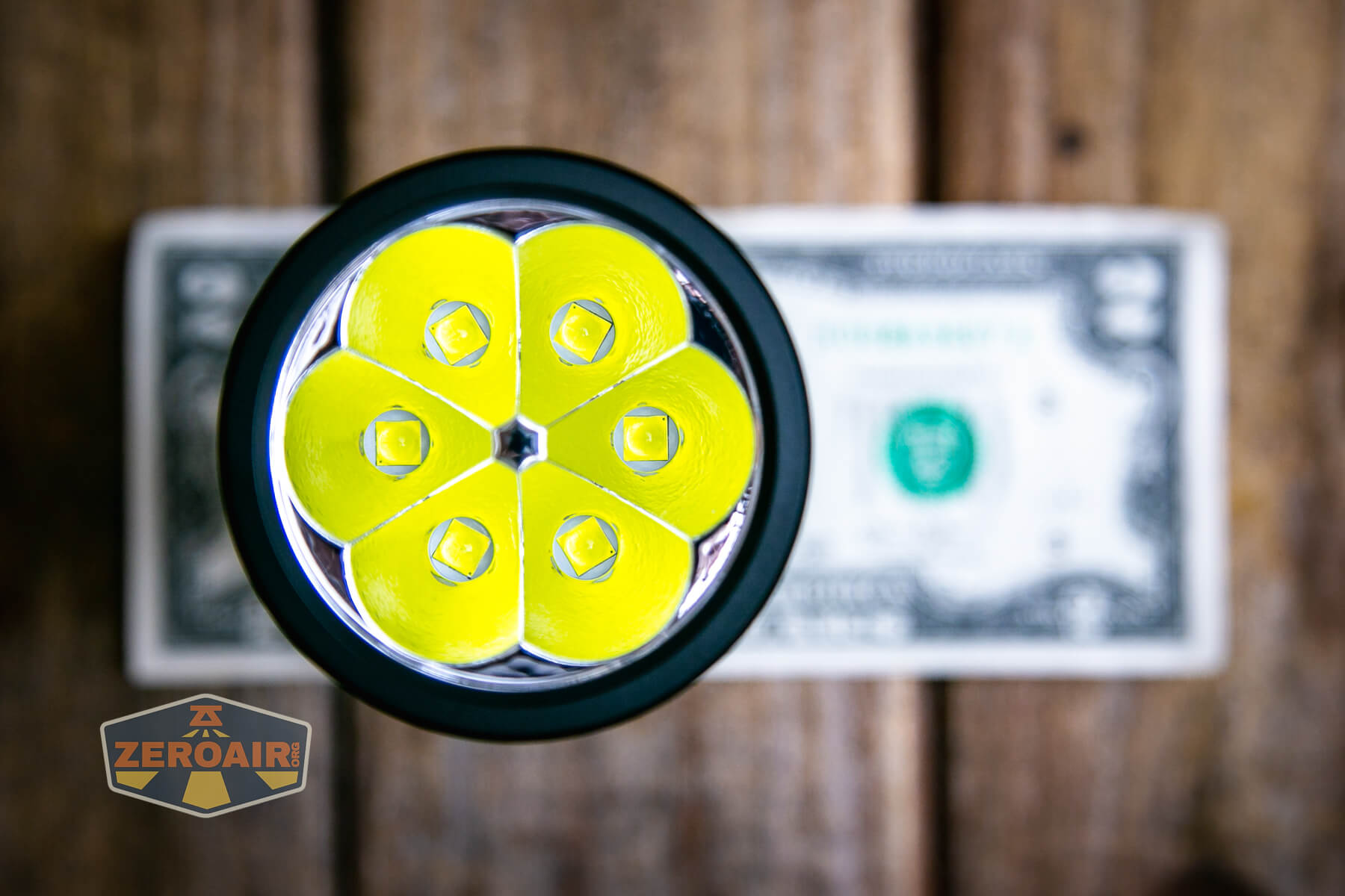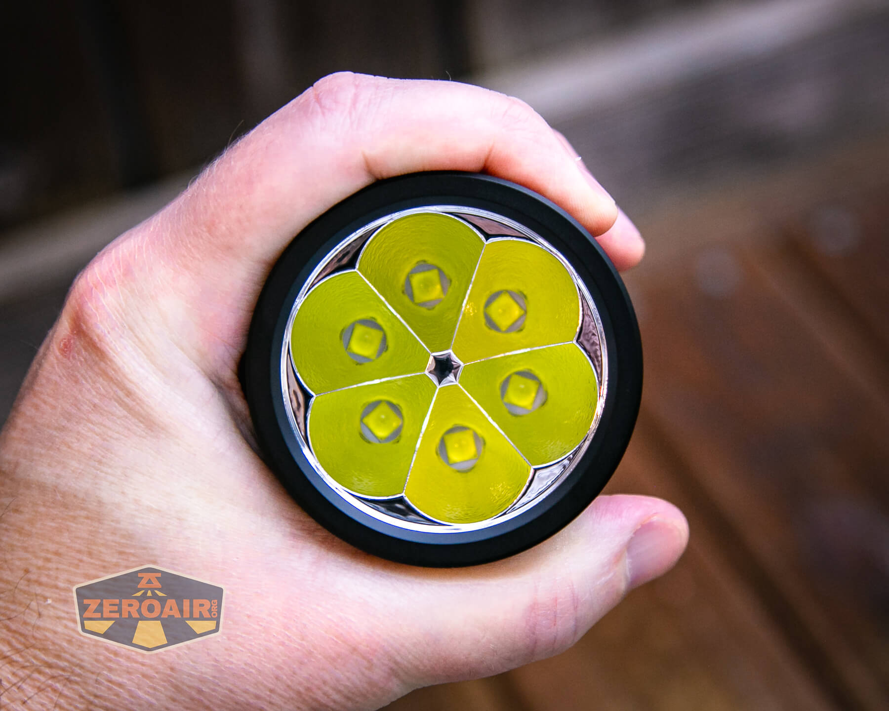 Sofirn has used six Cree XHP50B emitters in the Q8 Plus. Mine are 6500K, but there is at least one other option (5000K, I believe).