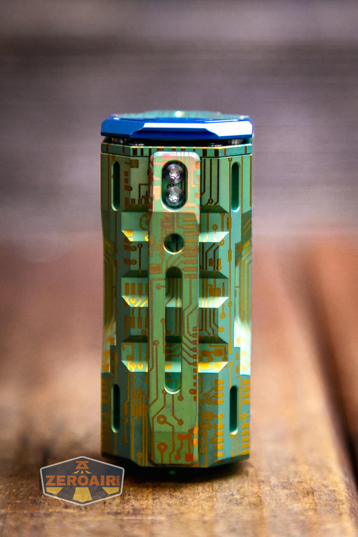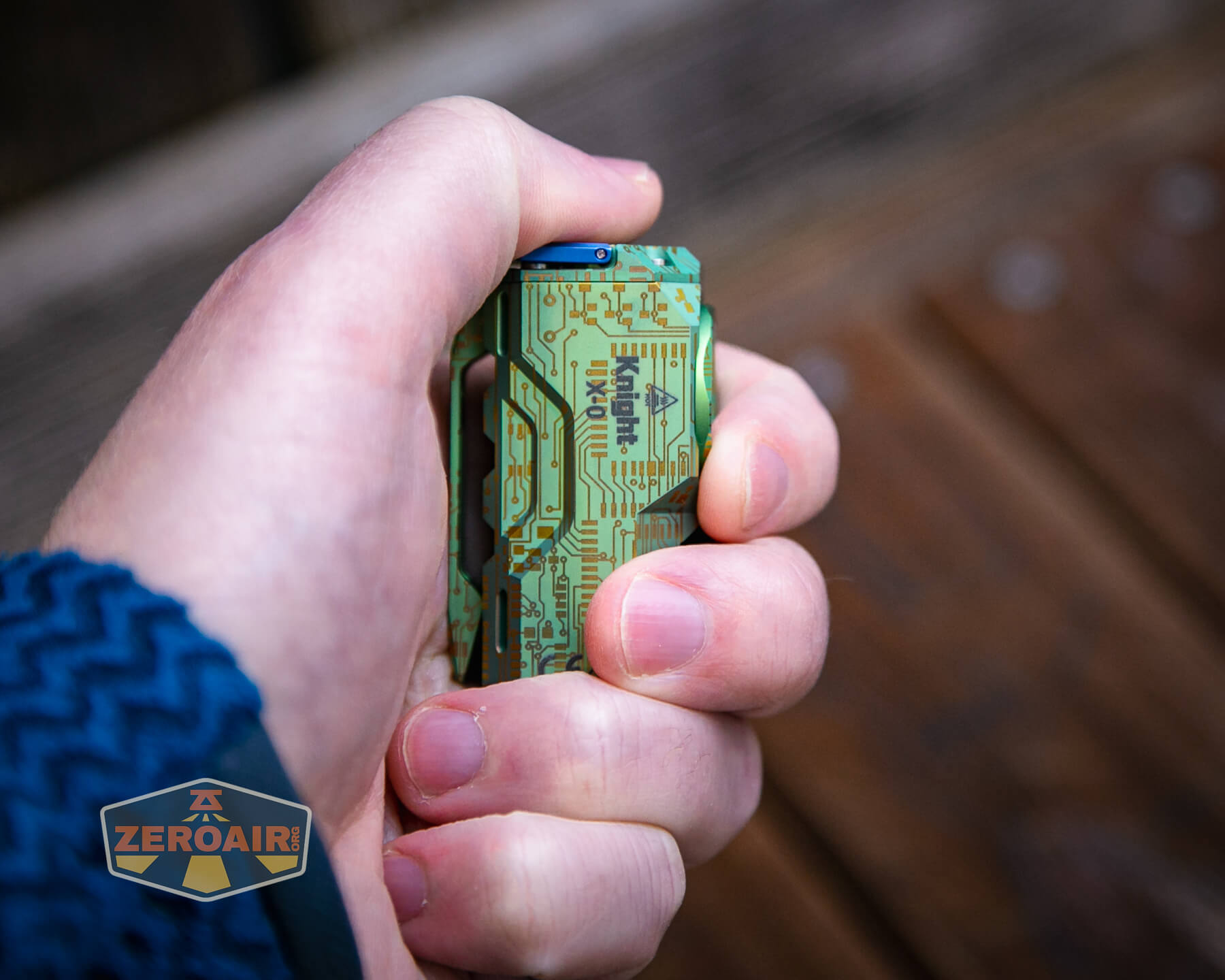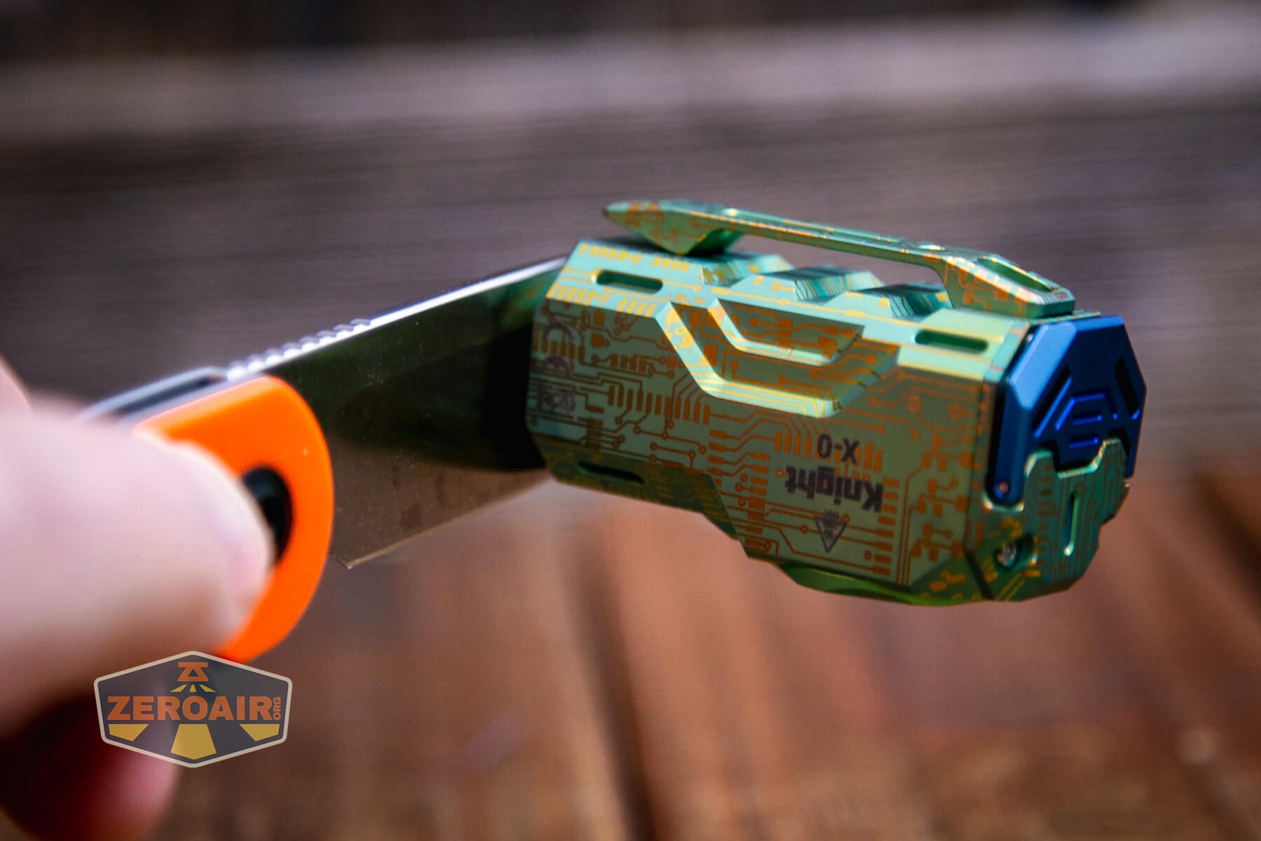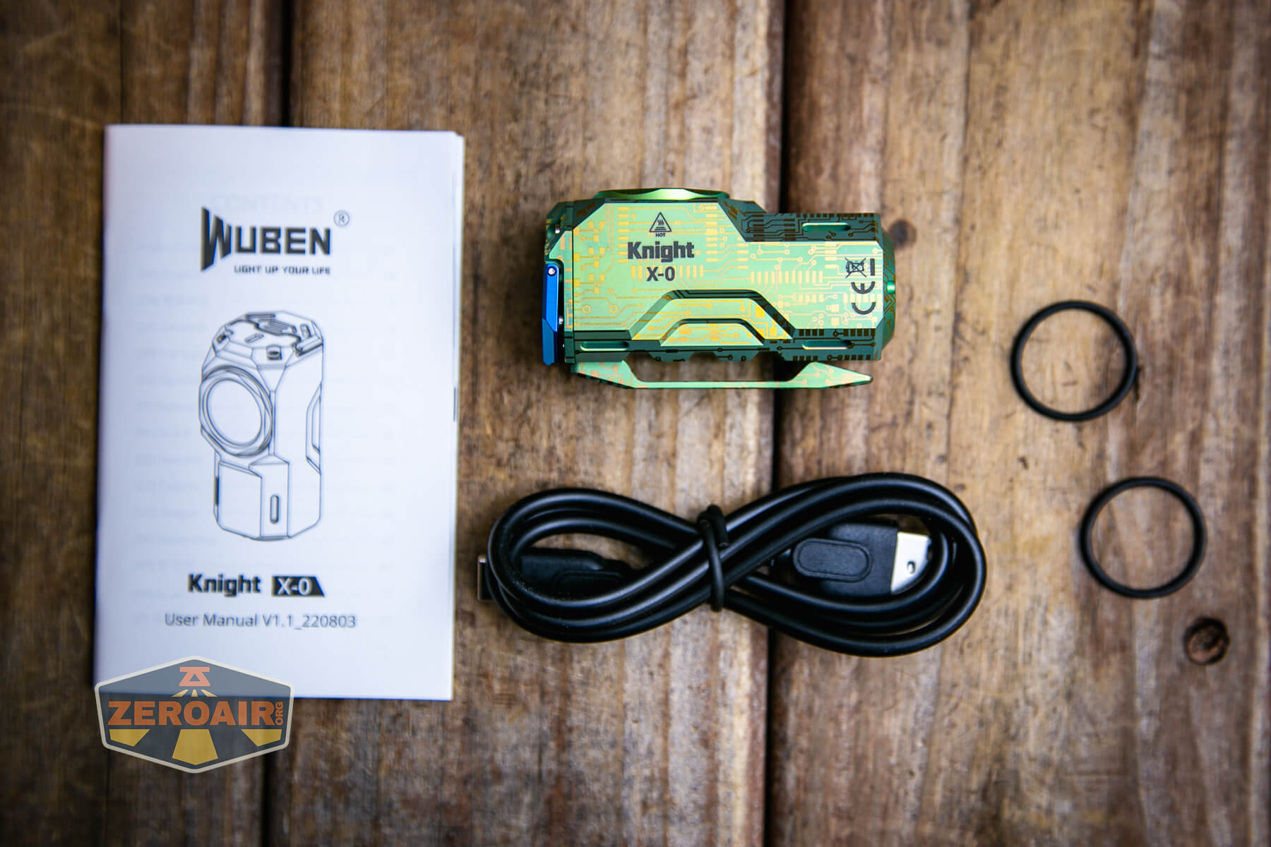 The Wuben X-0 Knight titanium flashlight is now available! It has USB-C charging as well as many Tritium slots and a novel design – engraved blues and greens!